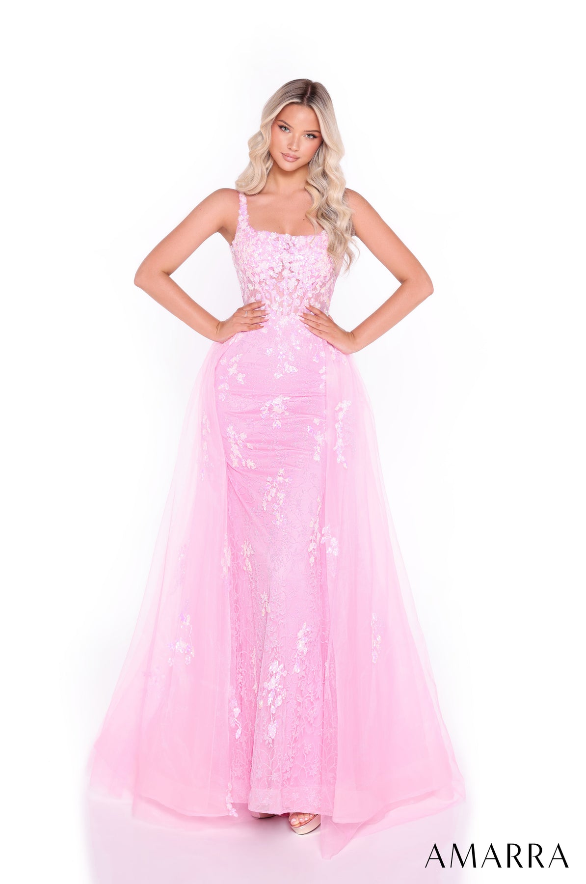 The AMARRA 89373 is pure glamour wrapped in shimmering beads and playful fringe. This sleeveless stunner features a daring plunging V-neckline and an open back that commands attention, while intricate beadwork adorns the fitted silhouette. Cascading fringe along the skirt adds movement and fun to every step. Crafted from luxurious beaded mesh and flowing to the floor, this dress is your secret weapon for pageants and unforgettable evening events. Turn heads and own the room.