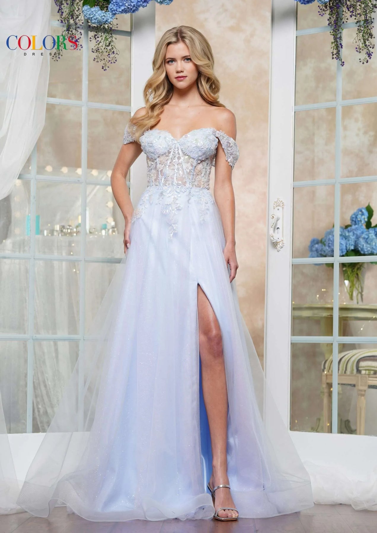 Be the center of attention in our Colors 3498 Dress! This stunning A-line gown features delicate embellished lace with cap sleeves, a lace up back, and a corset bodice for a perfect fit. Feel like a queen with this beautifully crafted dress that will accentuate your figure and make you stand out from the crowd.