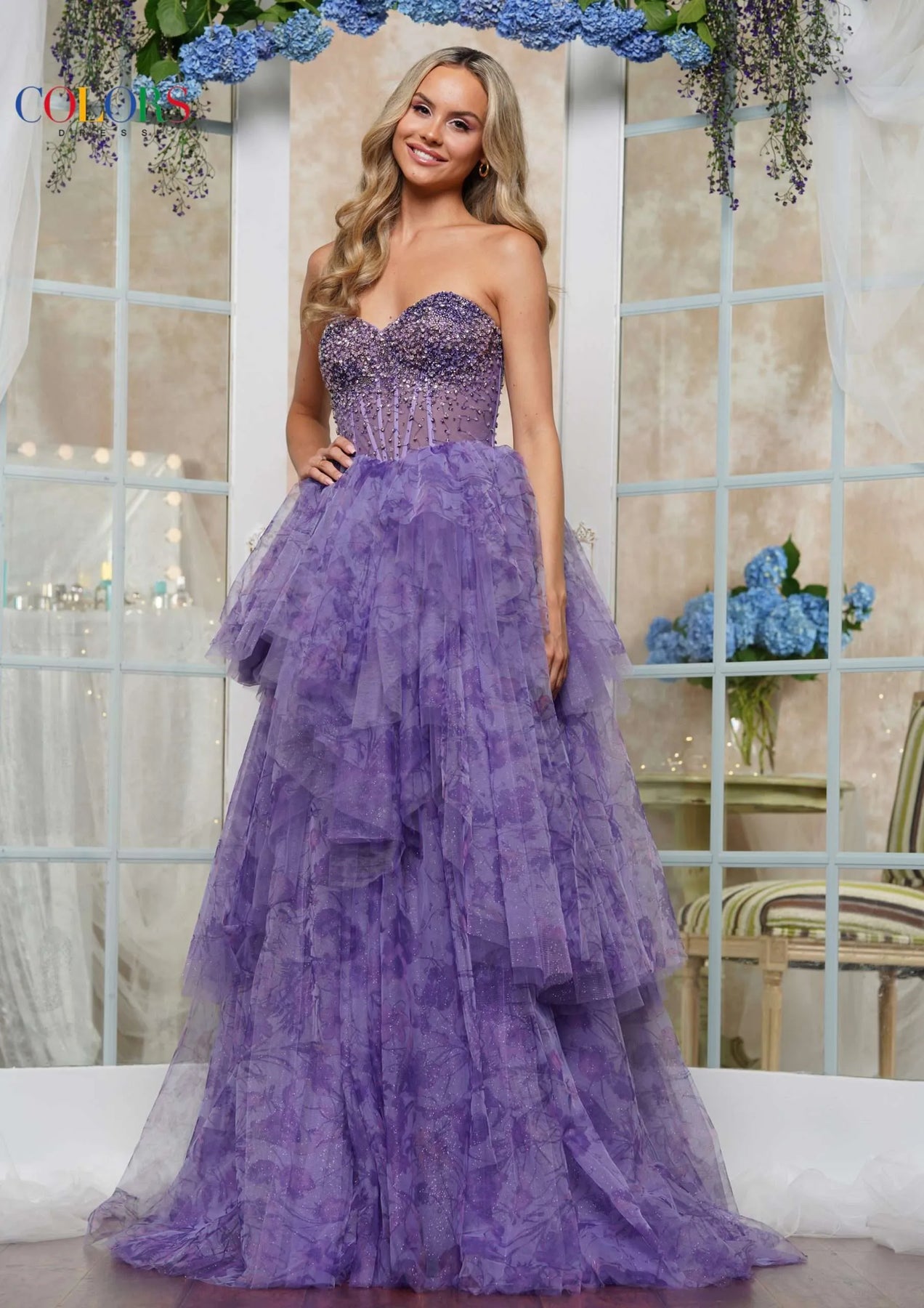 Get ready to wow in our Colors 3572 Dress! This stunning strapless gown features a sweet heart corset bodice, intricate beaded bust, and playful ruffled mesh. The lace up back adds the perfect touch of charm to this unique and stylish look. Perfect for any special occasion!
