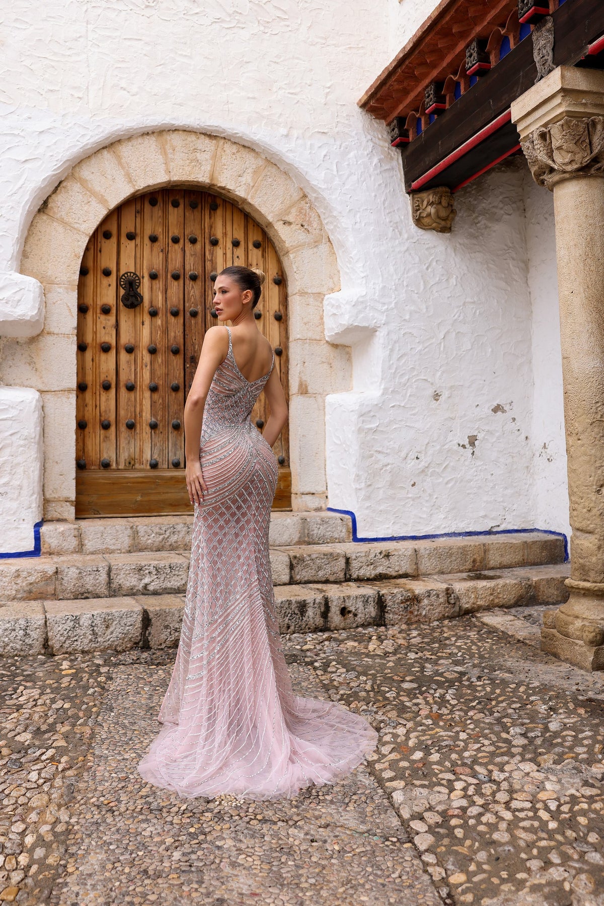 Get ready to turn heads in the amazing Chic and Holland AR330290 Dress. This beautiful and elegant dress features a unique and special design that will make you stand out from the crowd. The high slit and beaded detailing add a touch of style, while the mermaid silhouette and open back with a v cut bring an evening look to the next level.