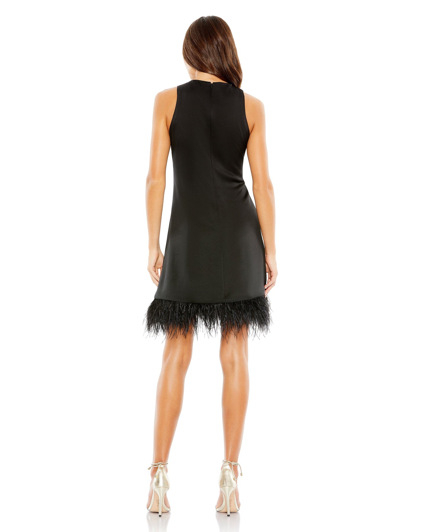 Your fun-loving spirit—in a dress! This satin confection is cut in a swingy trapeze silhouette and styled with a jewel neckline, cutaway shoulders, and flirty feather trim that takes the dress to the next level. Wear it for end-of-the-year dances, cocktail parties, and other dress-up occasions.