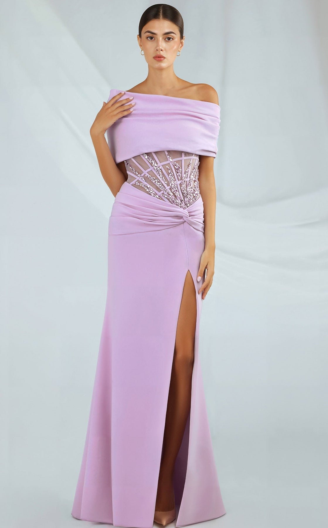 Step out with charm and grace in the GATTI NOLLI OP7391 Dress. This elegant long gown features delicate beading from the waist down, adding just the right touch of sparkle. The off-shoulder neckline and straight-across cut highlight your décolletage playfully, while the mid open back delivers a hint of allure. A high slit ensures ease of movement with a flirty twist, making this dress perfect for turning heads at any special occasion.