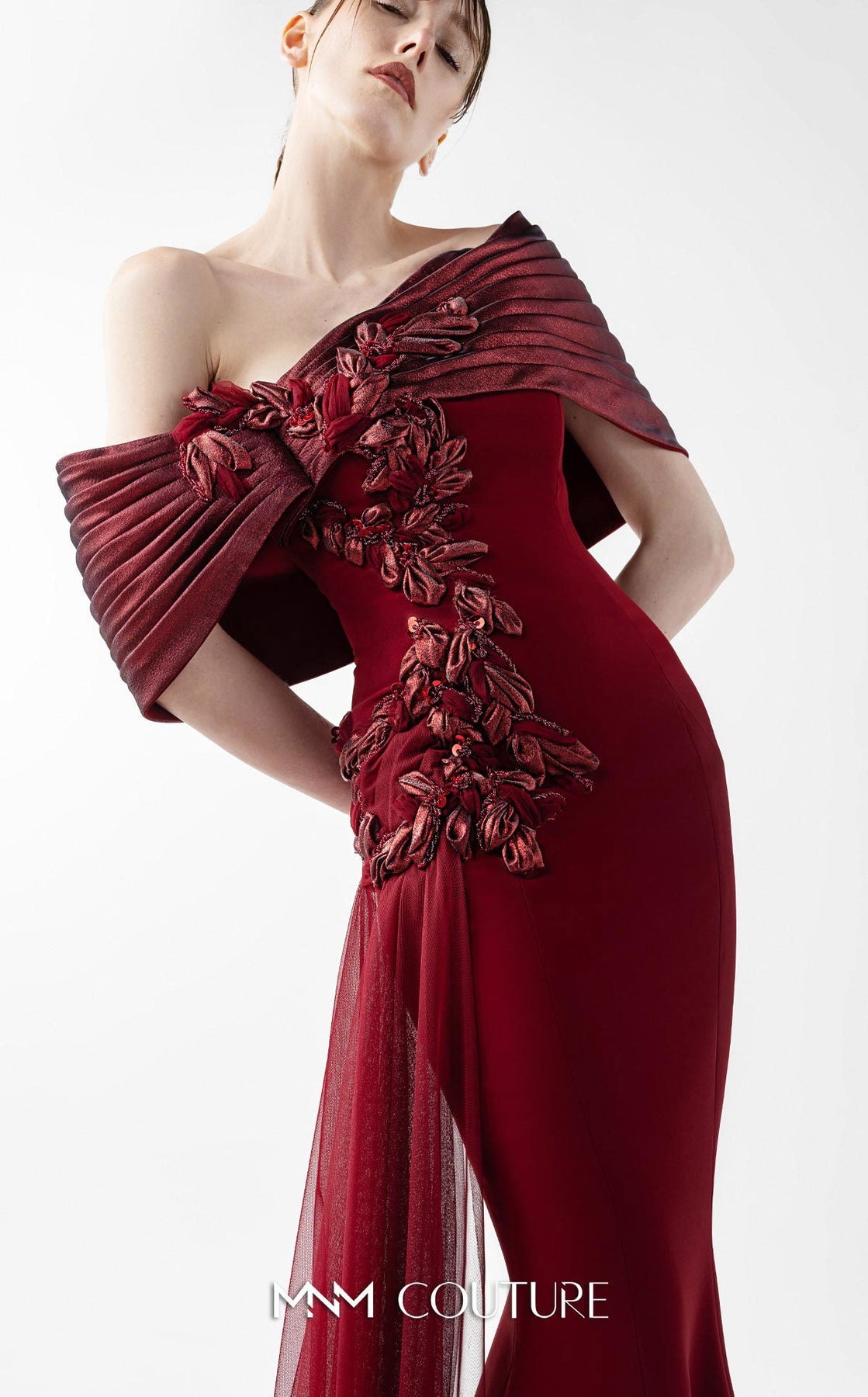 The Gaby Charbachy G2022 Dress is a playful couture standout. This long, sleeveless gown features a chic one-shoulder design and a striking open back, perfectly blending elegance with a touch of bold flair for your next unforgettable event.