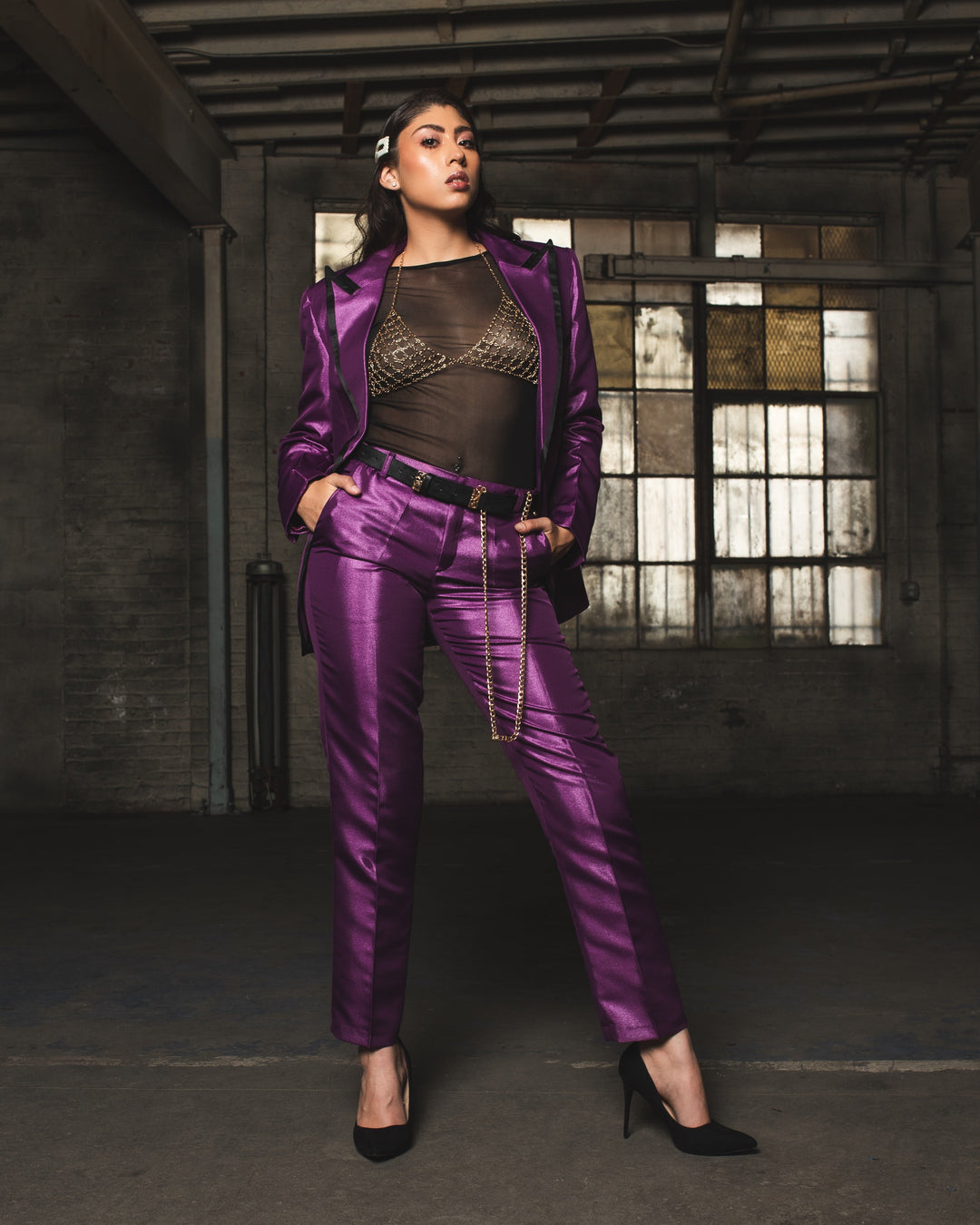 Peanut Butter Collection B- Vice Iridescent Silver Stripe suit