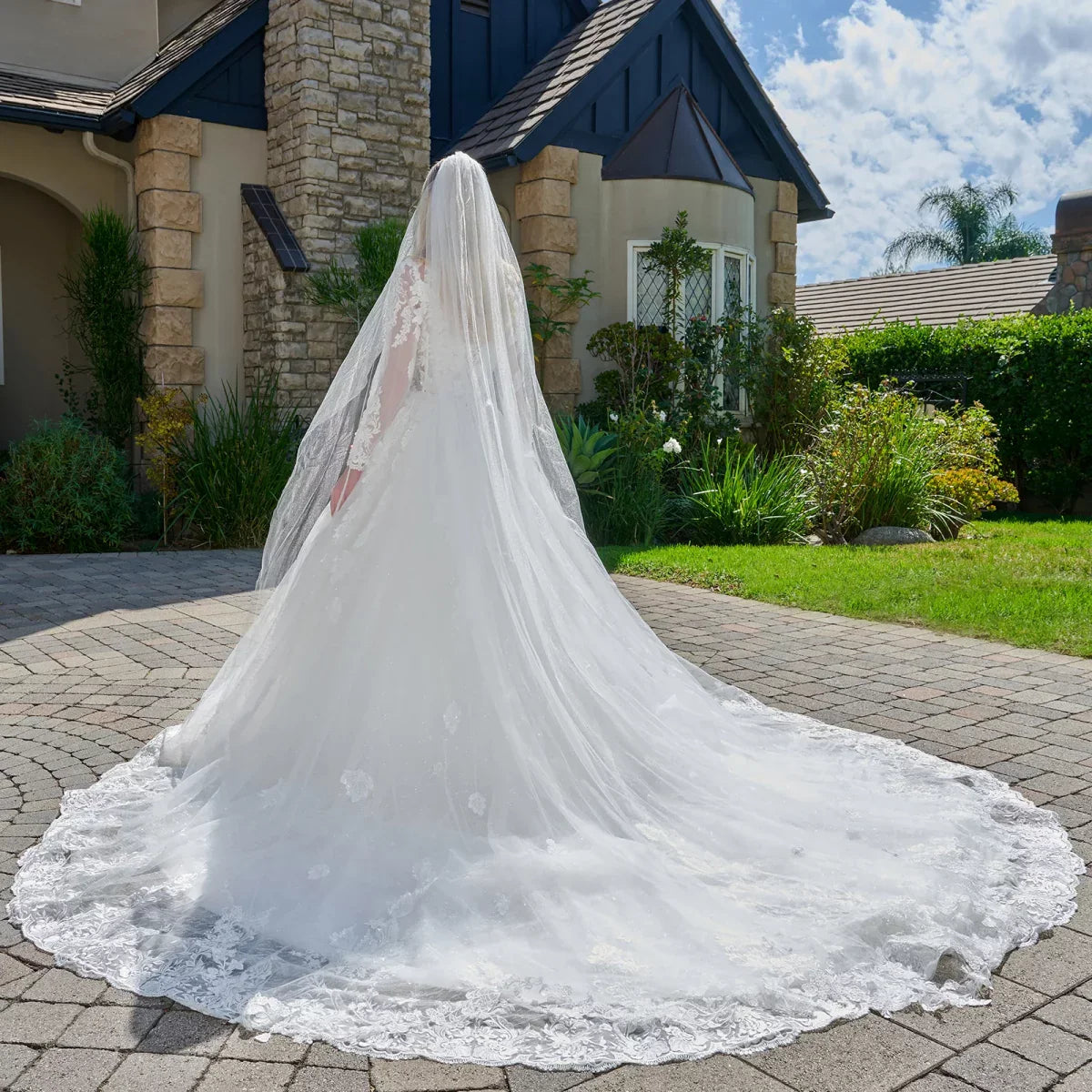This stunning wedding ball gown epitomizes timeless elegance with its thoughtfully modest silhouette. Sheer mesh long sleeves and a classic scoop neckline frame the structured corset bodice beautifully. Intricate embroidery, delicate beadwork, and shimmering sequins dance across the gown, while a subtle glitter underlayer creates a luminous, multidimensional effect. The voluminous ball gown skirt sweeps into a dramatic train, masterfully balancing grace with grandeur. Paired with a flowing veil, this dress creates an unforgettable bridal moment that honors both sophistication and romance.