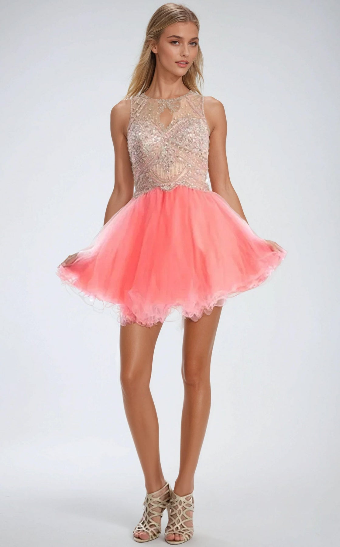 Turn heads at homecoming in this stunning Juliet 761 dress. The high beaded neckline adds glamorous detail while the sleeveless cut keeps things modern and chic. An unexpected open back creates an alluring silhouette that sets you apart from the crowd. Perfect for making a memorable entrance at any special occasion.