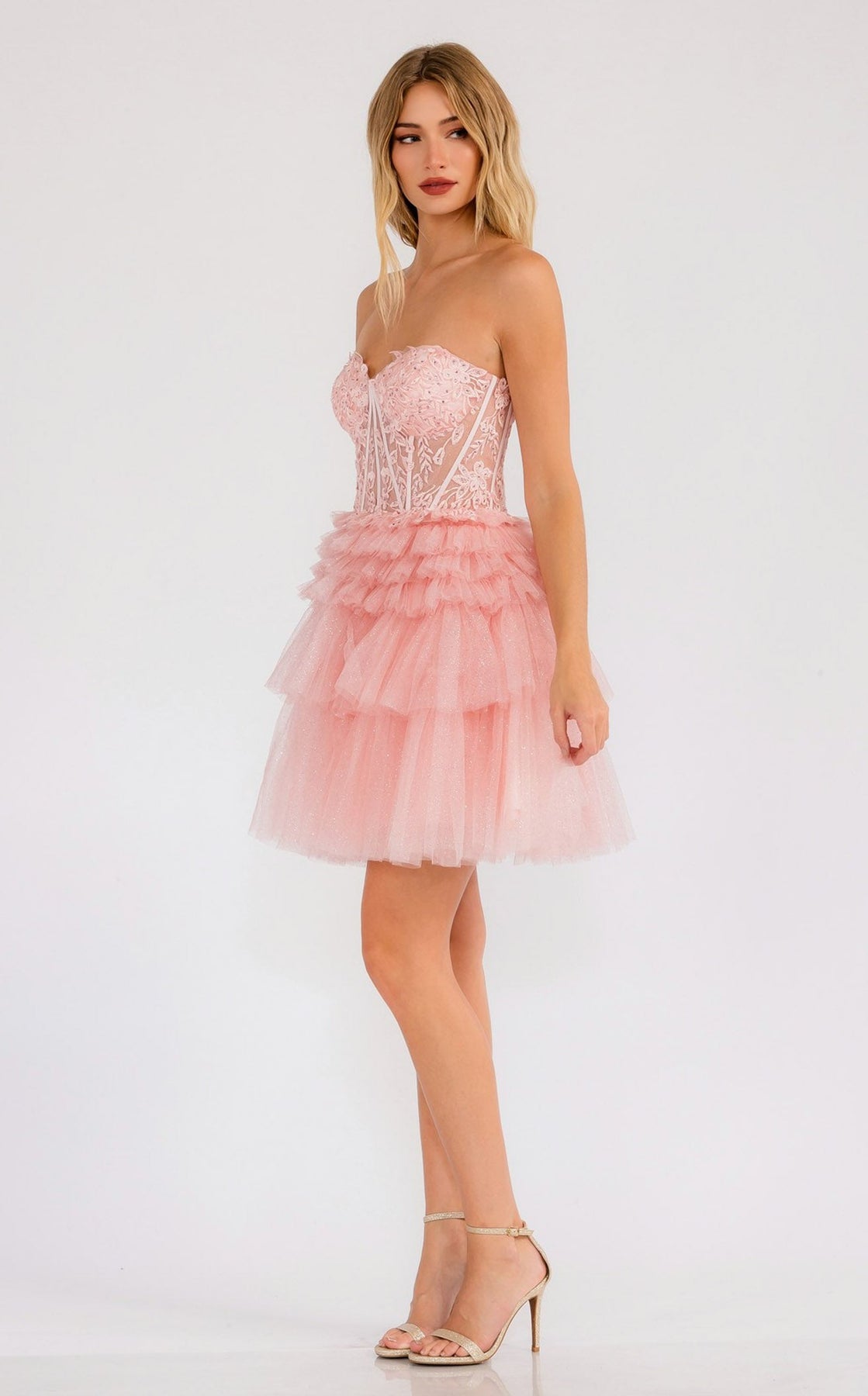 Discover effortless charm in the Juliet JT918S, a mini dress that captures romantic elegance with its sweetheart neckline and tiered A-line silhouette. The layered design creates beautiful movement and dimension, while the fitted bodice gracefully transitions into flowing tiers that flatter every figure. Perfect for date nights, celebrations, or whenever you want to feel confident and whimsical. This dress combines playful femininity with timeless style, making it an instant favorite in your wardrobe.
