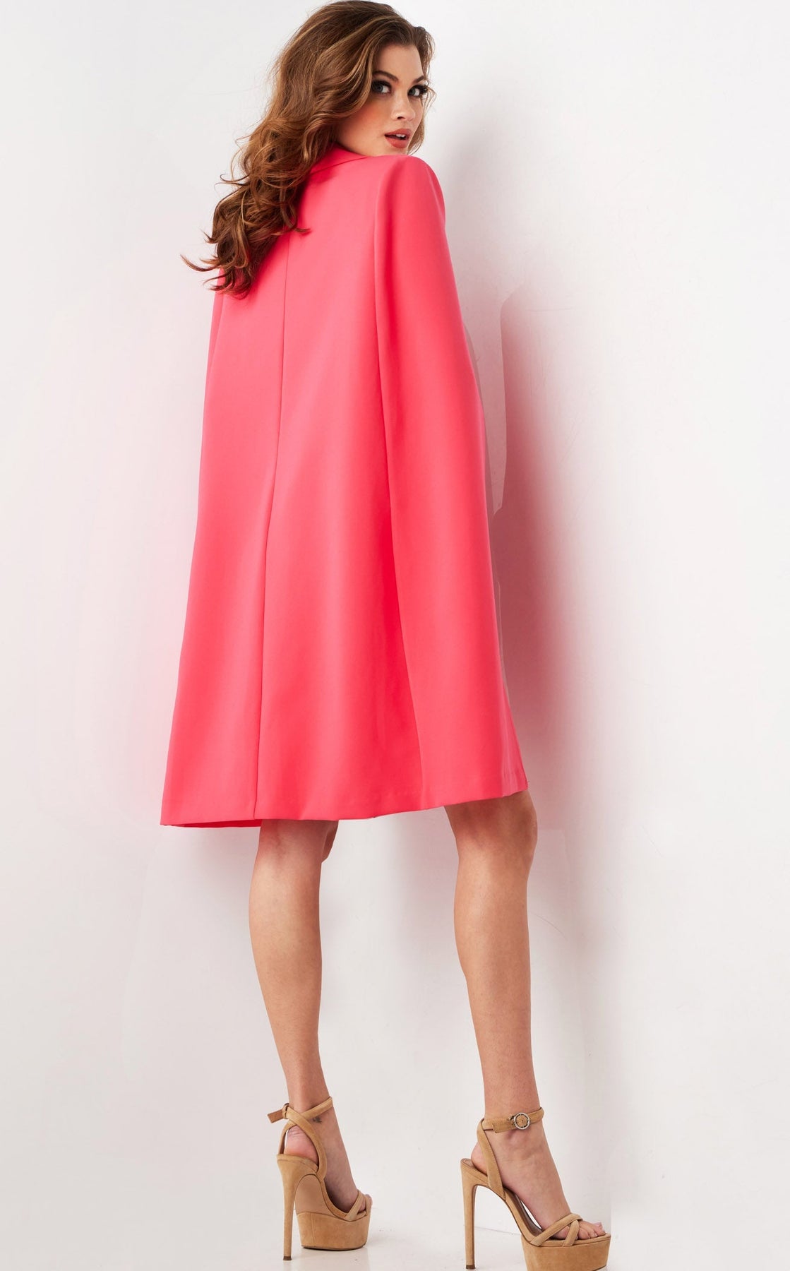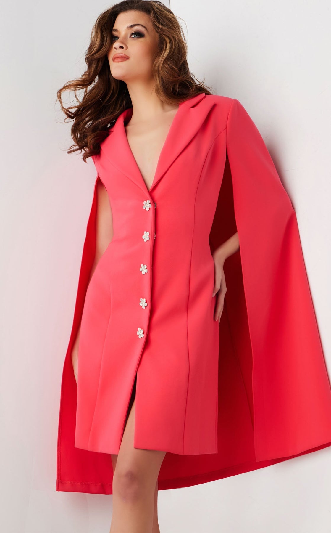 Elevate your style game with the Jovani 26026 dress. This luxurious crepe dress features a decorative floral button, plunging v-neckline, and dramatic cape sleeves. The short sheath silhouette and front slit add femininity to this show-stopping piece. Perfect for upscale events, be the center of attention in this Jovani masterpiece.