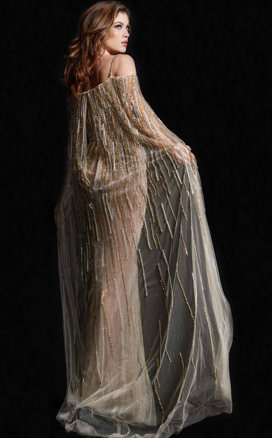 Step into the spotlight with the Jovani 26324 Dress, a playful yet elegant long gown featuring a chic crystal cape that adds a dazzling touch. Designed sleeveless with a straight-across neckline, this unique dress balances modern sophistication with fun, making it perfect for any standout event. Embrace effortless glamour with a flair all your own.