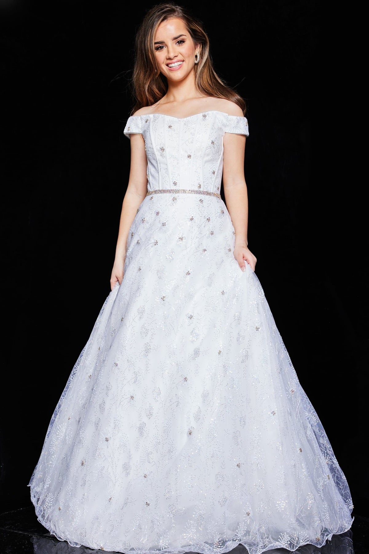 Step into the spotlight in this show-stopping Jovani gown that's basically a standing ovation waiting to happen! The off-the-shoulder sweetheart neckline frames your face beautifully, while intricate beading catches every light as you move. Crafted from sumptuous tulle and satin, the A-line silhouette flows effortlessly to the floor, creating that dreamy, graceful vibe. The sophisticated closed back? Chef's kiss. Whether you're heading to prom, a gala, or any formal event where you want to feel absolutely fabulous, this dress delivers elegance with a playful twist. Get ready to turn heads and feel like the best version of yourself.