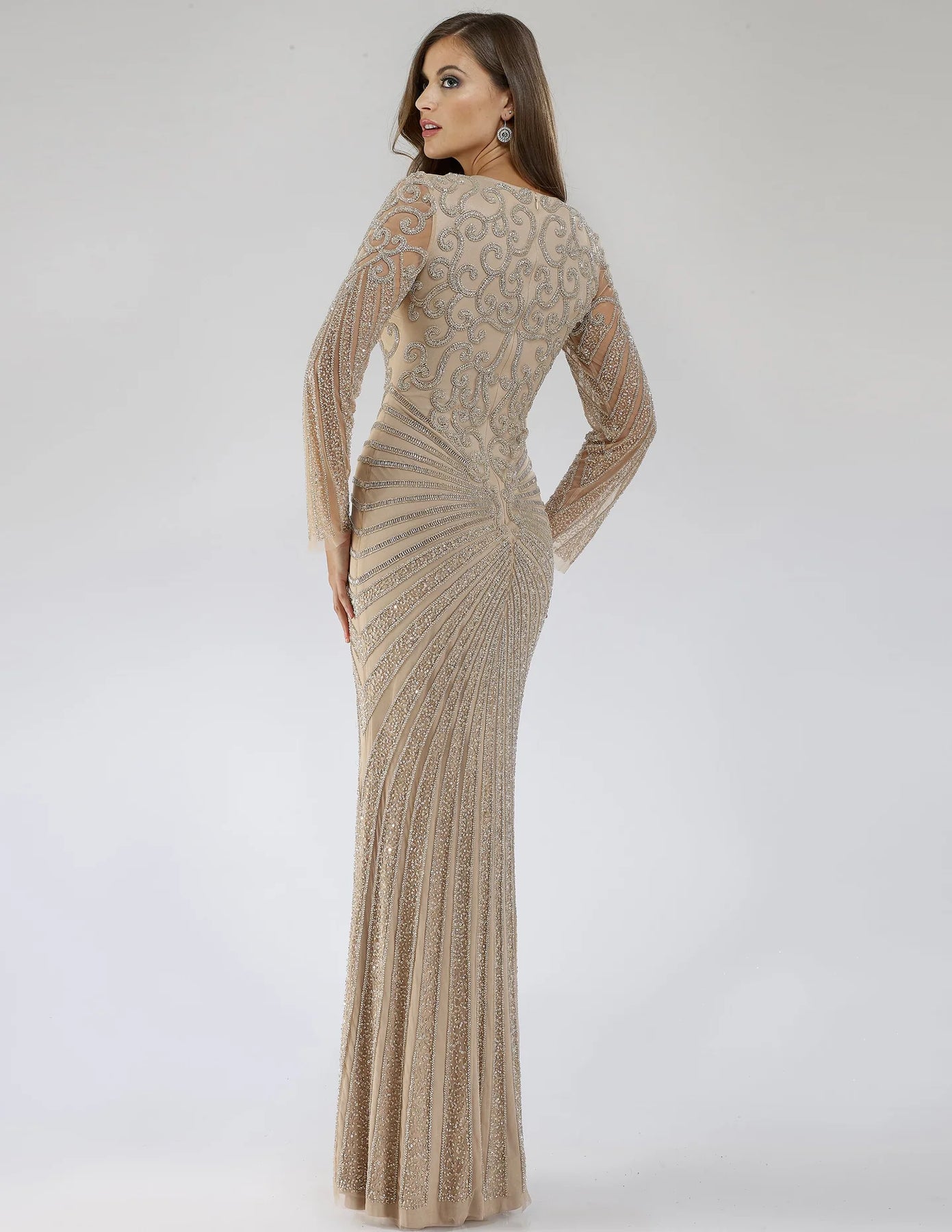 Lara 29602 - V Neck Beaded Long Sleeve Dress