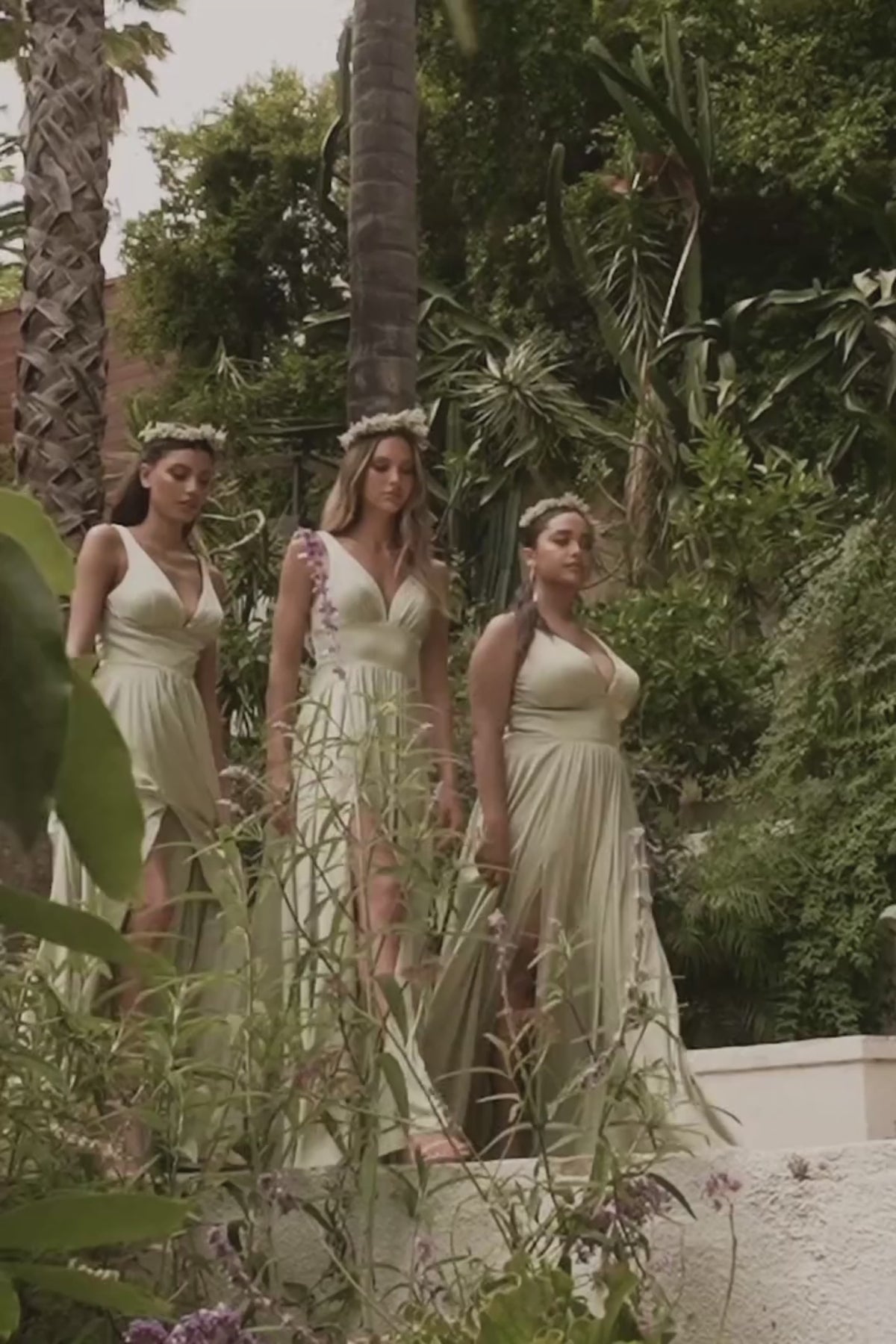 A classic bestseller, this Cinderella Divine design has been reimagined in stunning new hues for 2022 for a fresh new take on an old favorite. Loved by fashionistas all over the world over, this best-seller features a luxuriously soft satin fabric complimented with a flattering v-neck, soft A-line skirt, and intricate shirring. This dress is a perfect choice for any wedding vision.
