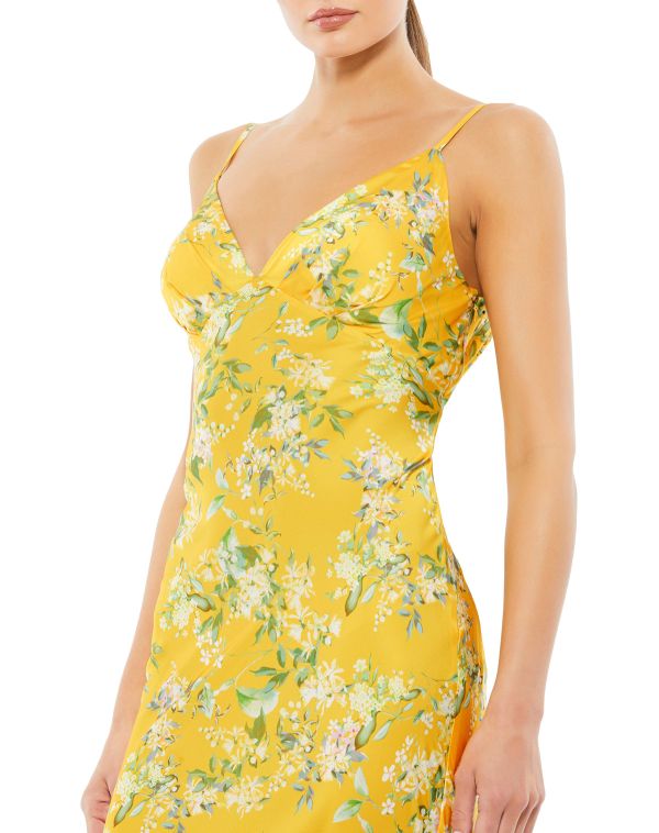 Be the center of attention in this Ieena for Mac Duggal 55396 cowl back floral print dress. With a playful and feminine print, and a unique and alluring cowl back design, this dress will make you feel confident and stylish. Perfect for any special occasion. Size 0 only.