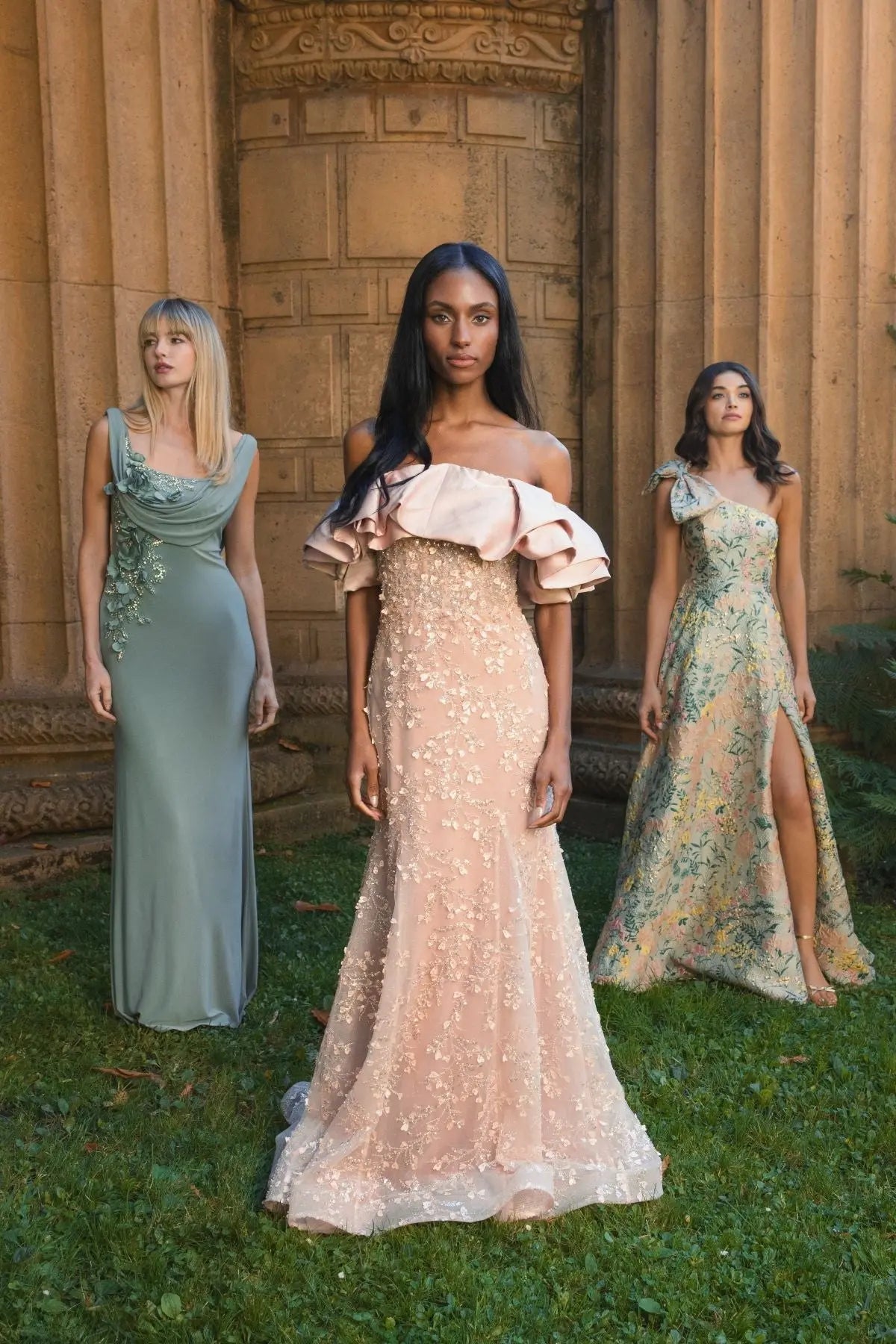 This exquisite off-the-shoulder gown is a celebration of craftsmanship and artistry. Sculpted with a striking yet romantic ruffled neckline, it features meticulously embellished beadwork and a graceful floor length mermaid silhouette. A perfect choice for moments that call for glamour and undeniable presence.