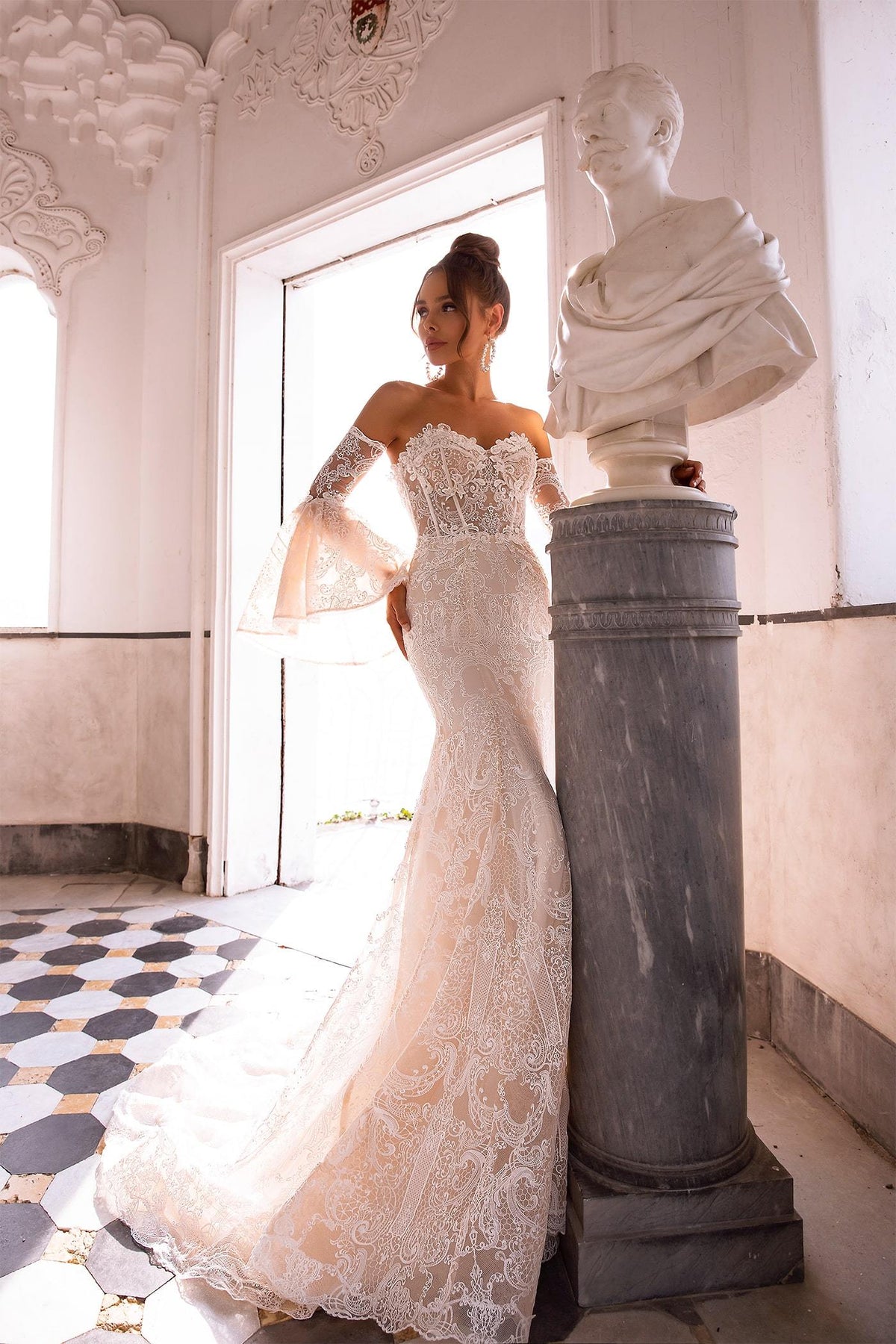 This Maria Anette 5008 dress is perfect for any bride-to-be. The off shoulder and strapless design adds an elegant touch, while the long length exudes sophistication. Make a statement on your special day with the Maria Anette 5008.