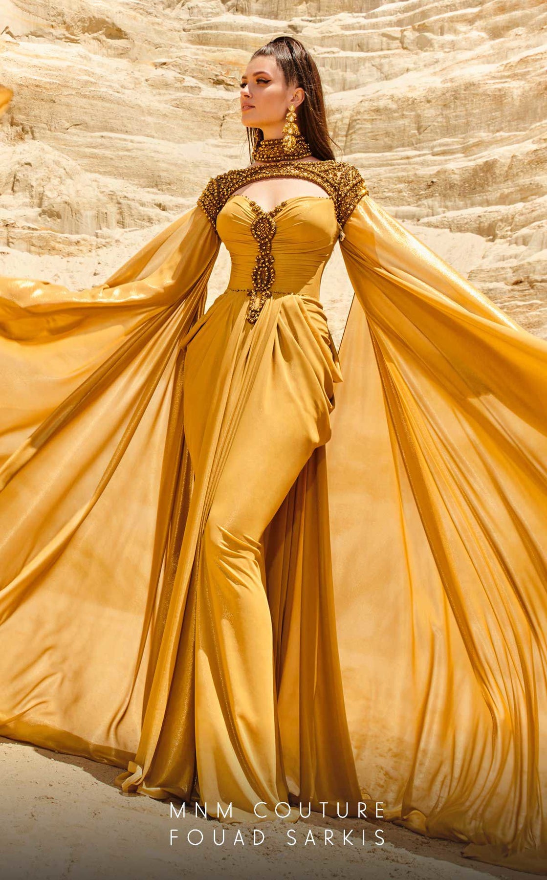 Elevate your couture evening or special occasion wardrobe with the addition of this breathtaking metallic chiffon dress. Its mesmerizing design showcases a captivating sweetheart neckline and delicate cap sleeves, adding a touch of allure and sophistication. The beautifully draped column silhouette is carefully crafted to flatter your figure effortlessly. The back of the dress is elegantly finished with a zipper closure, ensuring a tailored fit that accentuates your curves. The floor-length skirt exudes grace and elegance, while a tasteful side slit adds a hint of movement and flair. Embrace the next level of sophistication and style with this exquisite and refined dress.