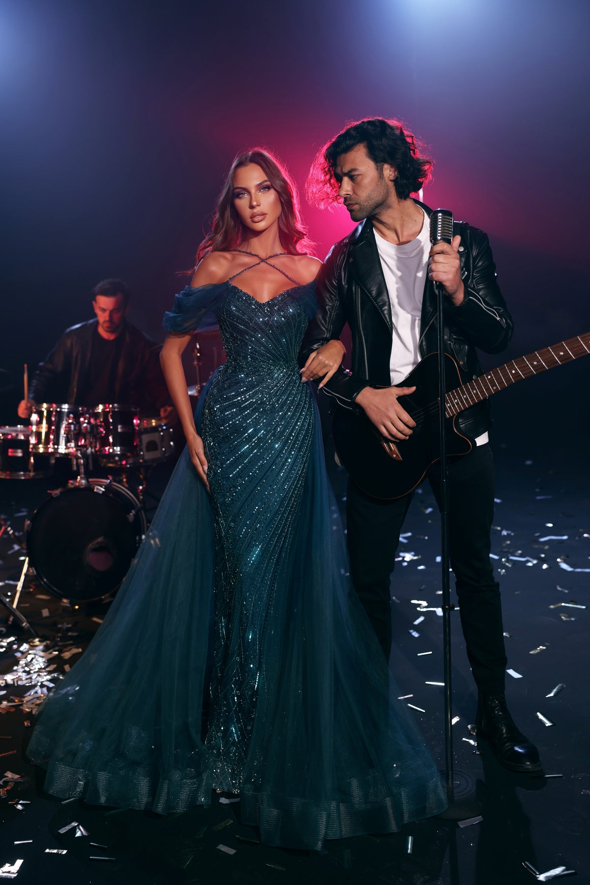 Slip into pure enchantment with this show-stopping mermaid gown that's basically a fairy tale come to life. The off-the-shoulder tulle sleeves whisper romance, while the heart-shaped neckline frames your face beautifully. But here's where it gets fun—the customizable X-shaped embroidered chest detail lets you play designer and adjust it to your vibe. Intricate embroidery dances across the entire dress, and those cascading tulle layers flowing from the waist to the floor? They're your personal red carpet moment. Perfect for anyone ready to turn heads and steal the spotlight.