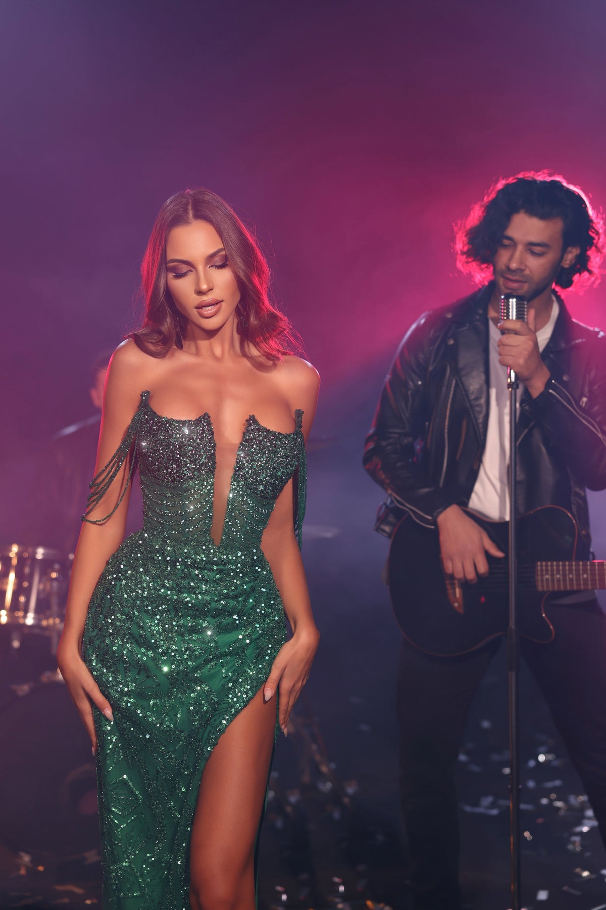 Slip into pure sophistication with the Modessa Couture M23515, a show-stopping mermaid gown that commands attention. The asymmetrical neckline and strapless silhouette create an effortlessly chic vibe, while delicate off-the-arm straps add just the right amount of intrigue. A daring thigh-high slit keeps things playful and modern, making this the perfect dress for anyone ready to turn heads and own the room with confidence and style.