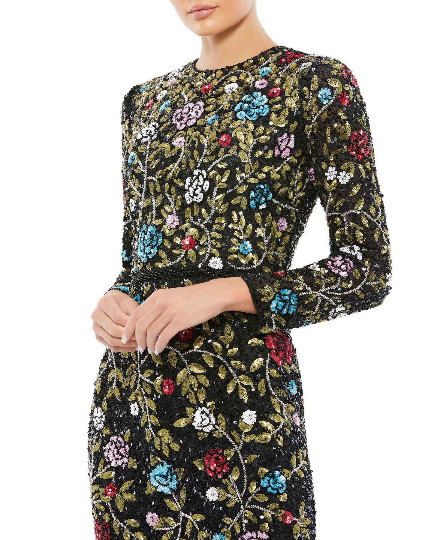 - Fully lined through body and skirt; semi-sheer unlined sleeves