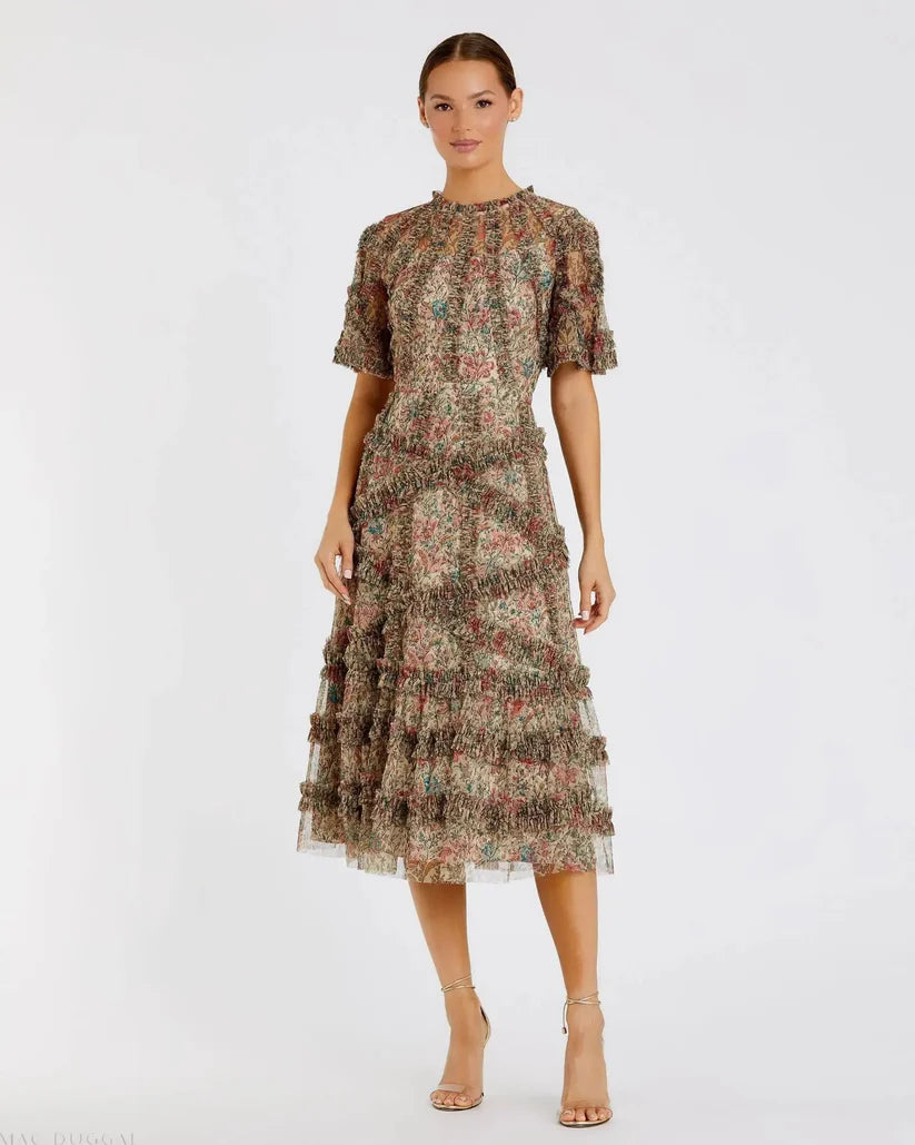 Introducing our Floral Flutter Sleeve Mesh Print Dress a delightful choice for your wardrobe. This dress features charming flutter sleeves and a lovely floral print on mesh fabric, adding a touch of whimsy. Perfect for brunches or casual outings, this dress ensures you'll look effortlessly stylish and feminine.