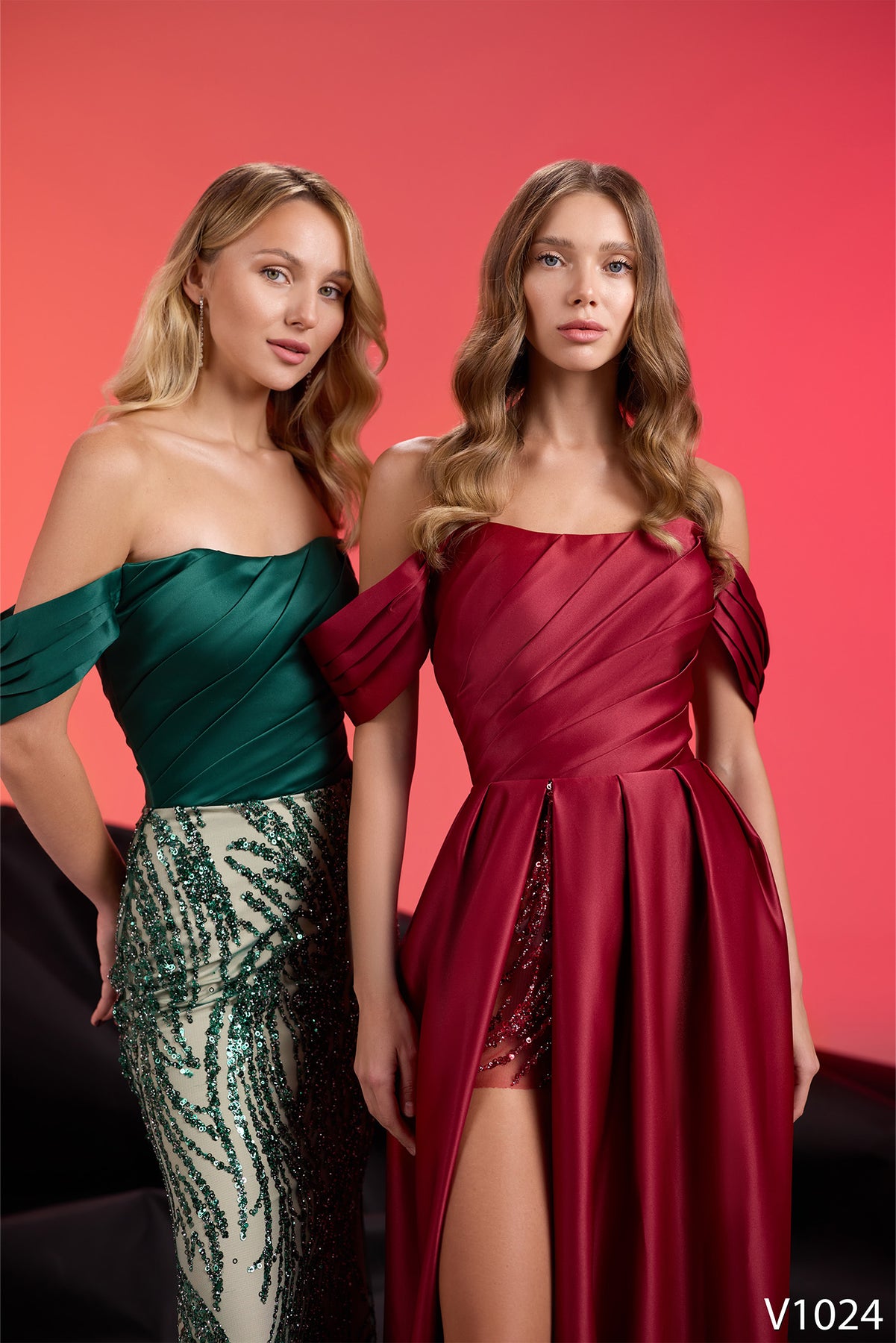 Introducing the Vissaria v1024 Dress – where elegance meets a touch of playful allure. This stunning gown features a romantic sweetheart neckline and chic off-shoulder design that frames your shoulders beautifully. The high slit adds a daring edge to the sophisticated silhouette, perfect for making a statement at any special occasion. Crafted for those who want to feel confident and glamorous, this dress effortlessly transitions from formal events to upscale evening gatherings. Slip into timeless elegance with a modern twist.