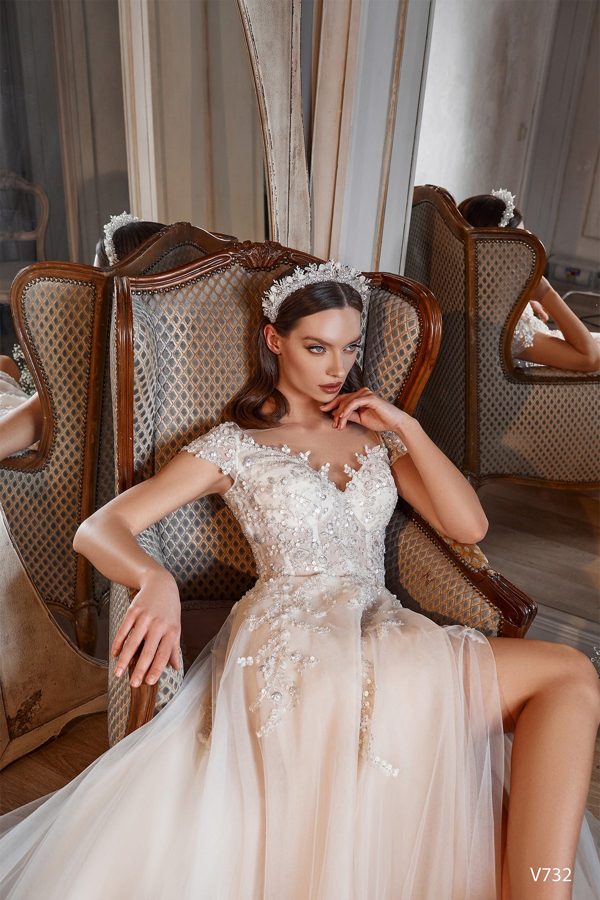 Introducing the Vissaria v732 Dress—a stunning bridal choice that celebrates elegance and confidence. This sleeveless gown features a flattering V-neckline that frames the shoulders beautifully, while the high slit adds a touch of modern sophistication and ease of movement. Perfect for the bride who wants to feel both graceful and empowered on her special day, this dress combines timeless design with contemporary flair. Whether you're walking down the aisle or dancing into the night, the Vissaria v732 offers the perfect balance of romance and bold style that lets your personality shine through.