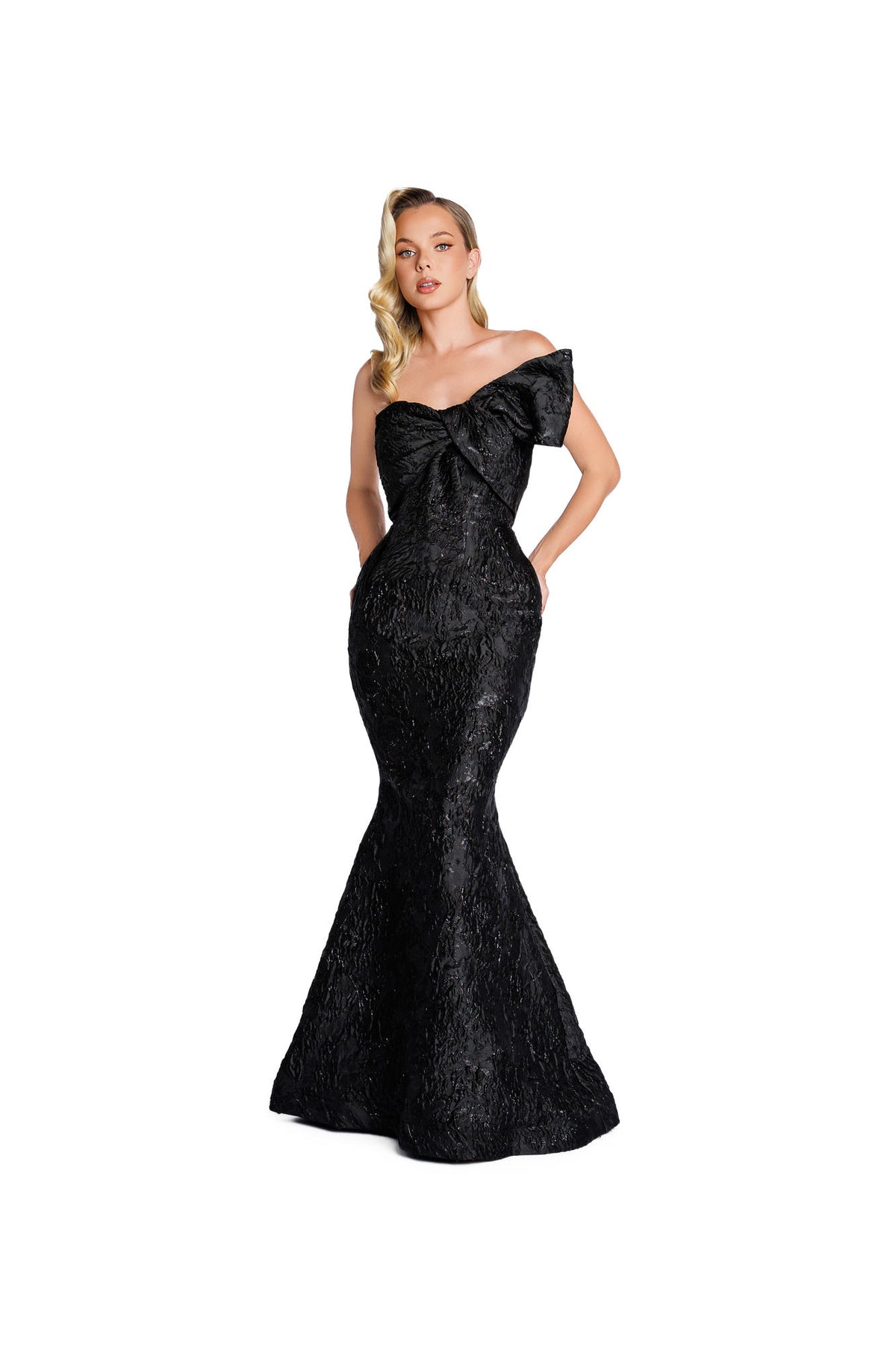 Be the belle of the ball in our NICOLE BAKTI 7384 dress. Embrace elegance with the off-shoulder design, while the open back adds a touch of allure. Perfect for an evening event, this sleeveless dress will have you feeling like a star.