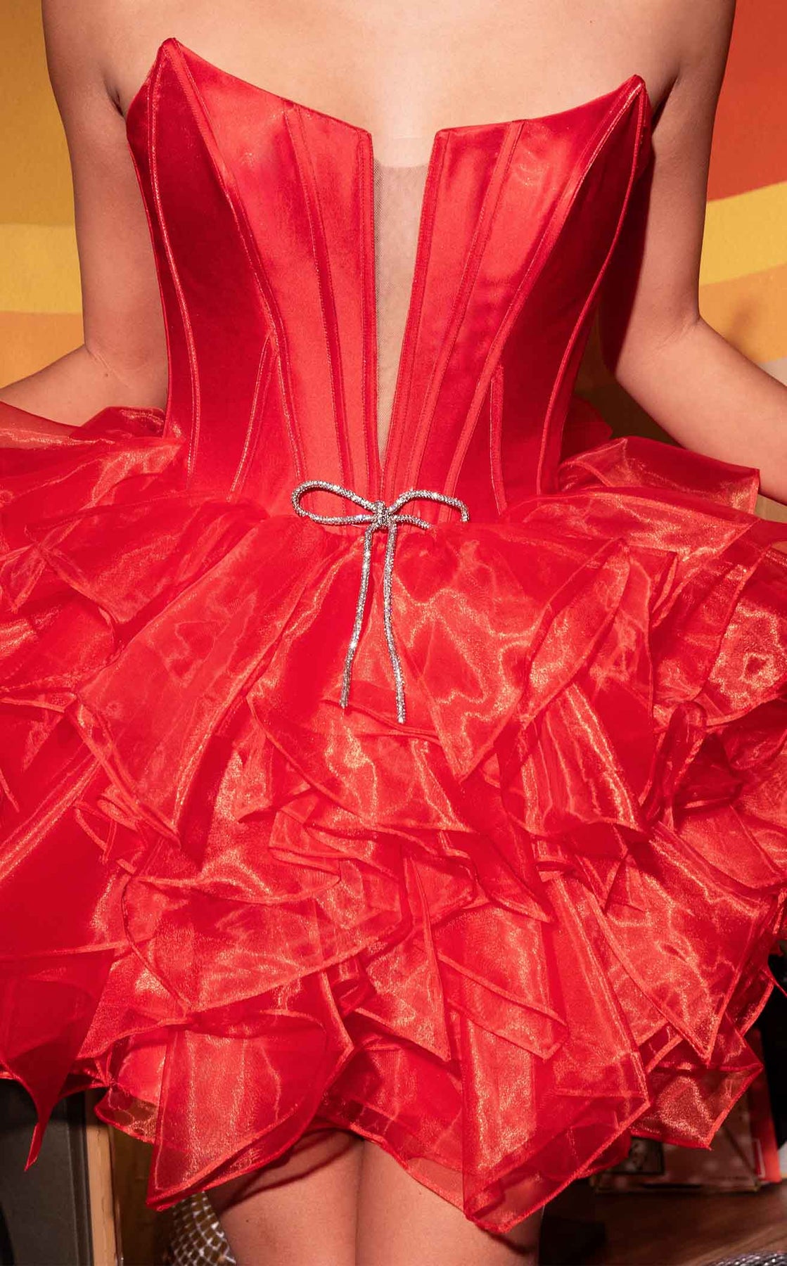 Step into the spotlight with the Rachel Allan 40536 Dress—a short, strapless stunner designed to turn heads. Its V-neckline adds a touch of daring, while the figure-flattering silhouette lets your confidence shine through. Perfect for nights out, special celebrations, or VIP events, this dress pairs flawlessly with metallic accessories and a bold lip to elevate your look. Ready to own every moment? This playful party dress was made just for you.