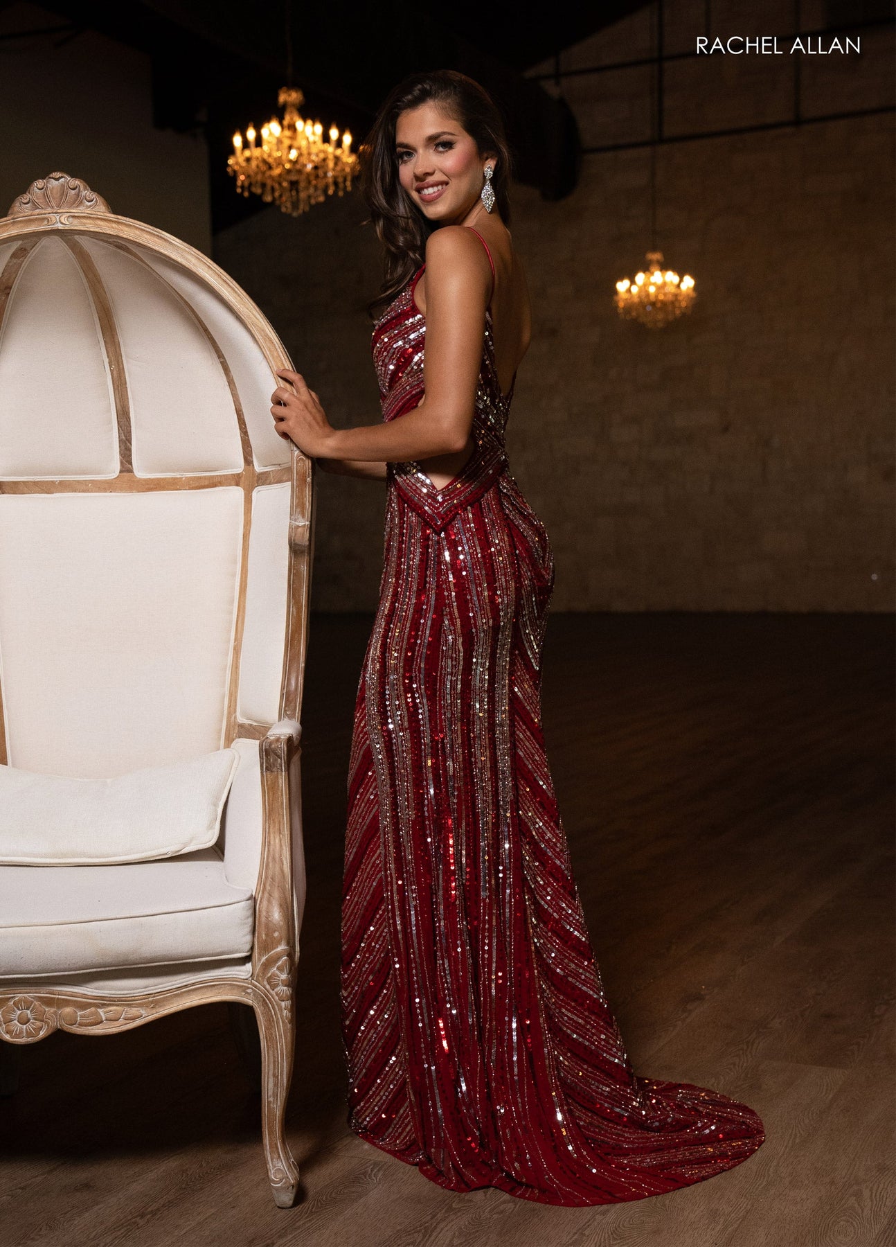 • Multicolor Beaded V-Neck Gown by Rachel Allan 70760