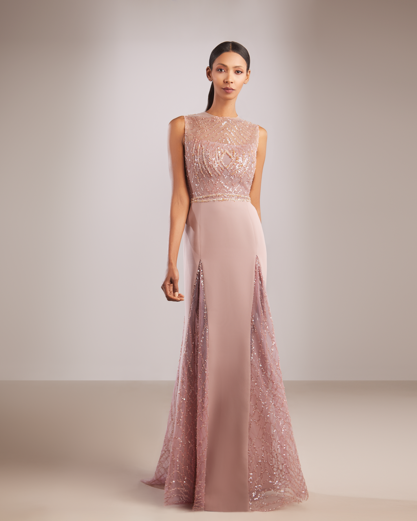 The Reverie Couture FW210 Dress is designed to make you feel like a princess. Its sleeveless pink gown features a stunning beaded bodice and delicate bead panels, while the side slit adds a touch of allure. With its soft, flowing cape, this dress will make you look and feel elegant and glamorous.