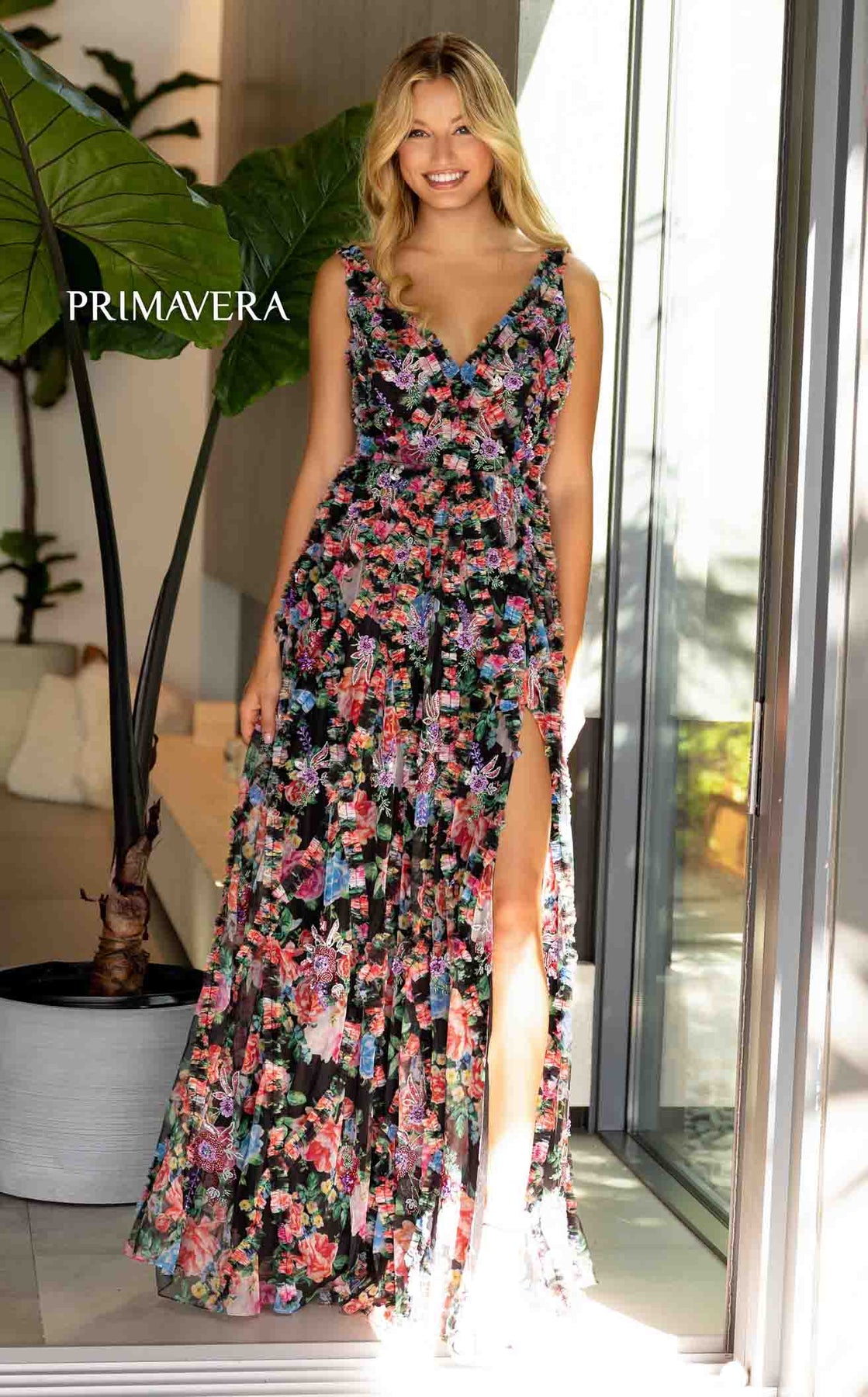 Get ready to confidently wow the crowd in the Primavera 4167 Dress. This beautiful long dress features a V neckline, sleeveless design, and a unique special design with intricate beaded detailing. The elegant slit and open back add an amazing touch to this special evening piece. Prom night just got a whole lot more stylish!