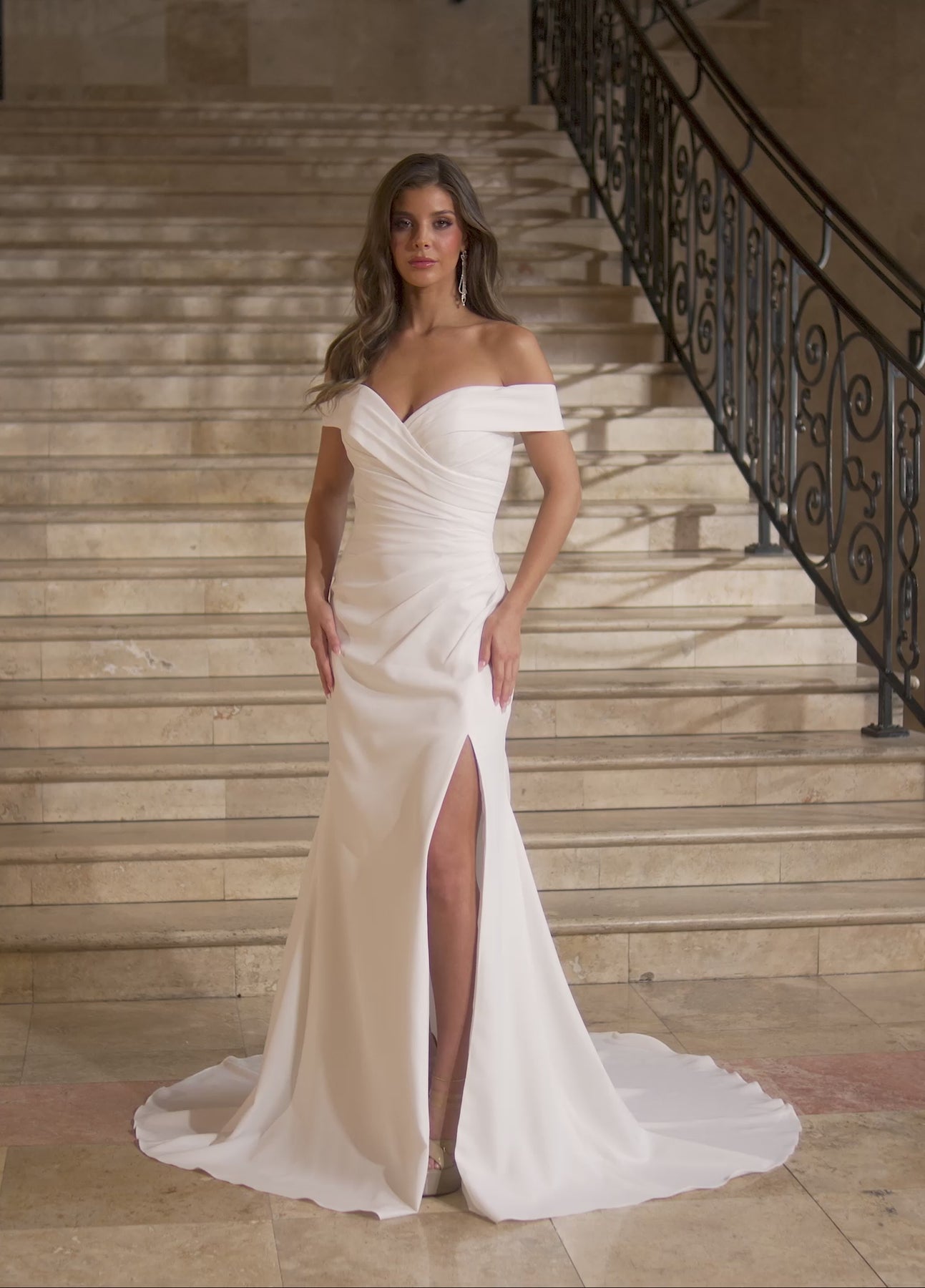 Step into bold elegance with the Rachel Allan RB2171 Dress. Its off-the-shoulder design and stretch crepe fabric offer both comfort and a sleek silhouette. The striking lace-up back adds a daring touch, perfectly highlighting your confident style. Make an unforgettable statement on your special day with this gown that celebrates your unique personality and crowns you the ultimate bride.