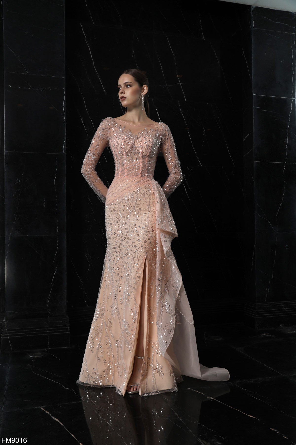 فستان FM9016، المصمم ببراعة وإتقان من قِبل أزور كوتور، هو الخيار الأمثل لحفل التخرج أو السهرة القادم. يتميز هذا الفستان بفتحة رقبة كلاسيكية على شكل حرف V وأكمام طويلة، بالإضافة إلى شق طويل أنيق وتطريز متقن. بتصميمه الملائم وامتداد جانبي، ستشعرين بالأناقة والرقي في هذه القطعة الراقية.