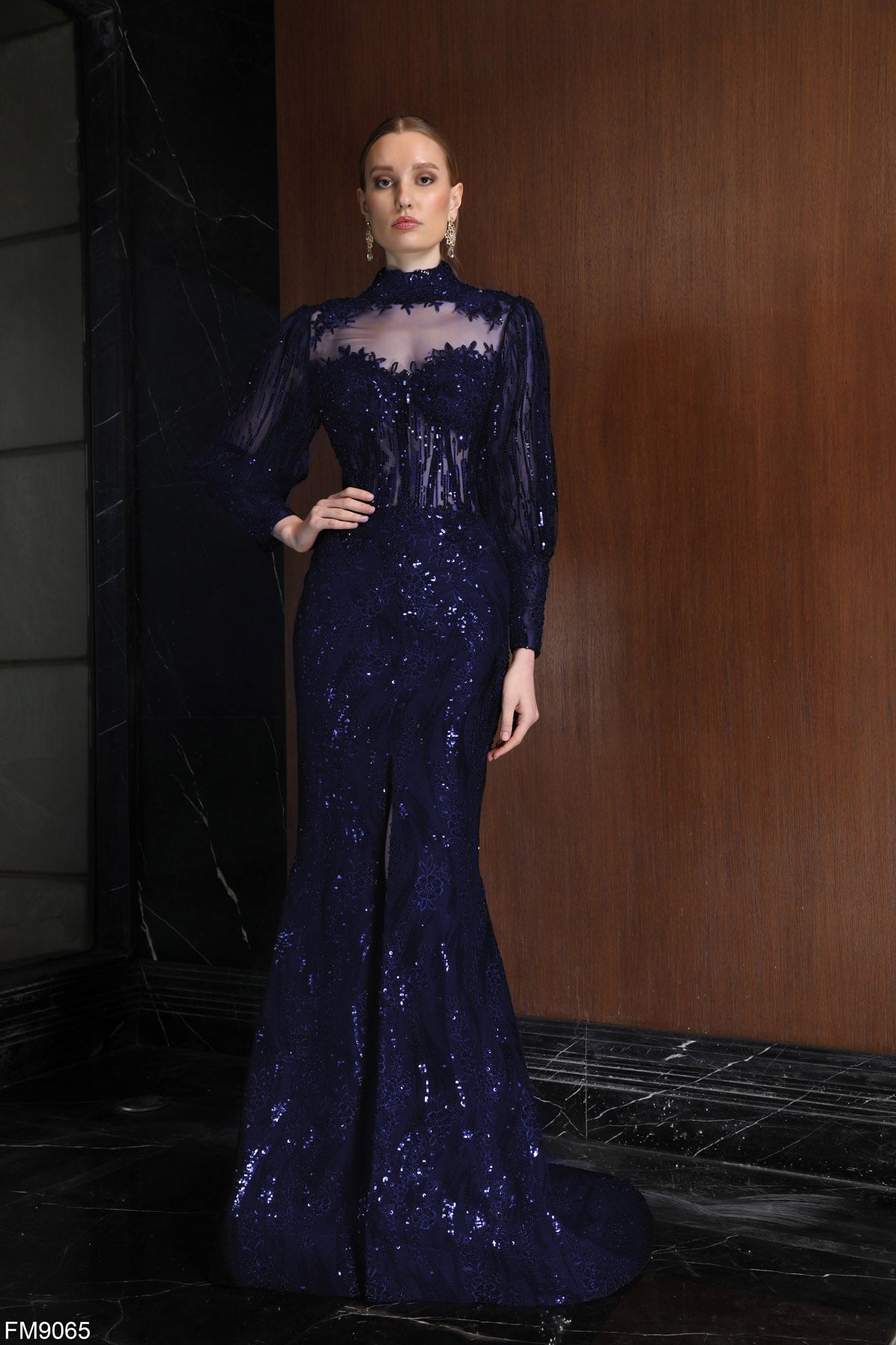 هذا الفستان الأسود الرائع هو فستان سهرة أنيق بتفاصيل دقيقة. يتميز بياقة عالية وأكمام طويلة شفافة، وتصميم منتفخ قليلاً. صُنع الفستان من الدانتيل الشفاف والترتر، مما يضفي عليه لمسةً من الأناقة والرقي. يُبرز التصميم الملائم الخصر قبل أن يتدفق إلى تنورة طويلة بقصة حورية البحر. يتميز الجزء الخلفي من الفستان بقماش شفاف مزين بتفاصيل دقيقة من الدانتيل والترتر، مما يضفي عليه لمسةً أنيقةً وجذابة. يبدو القماش لامعاً، على الأرجح بفضل الترتر والزخارف، مما يجعله مثالياً للمناسبات الرسمية أو الرسمية.