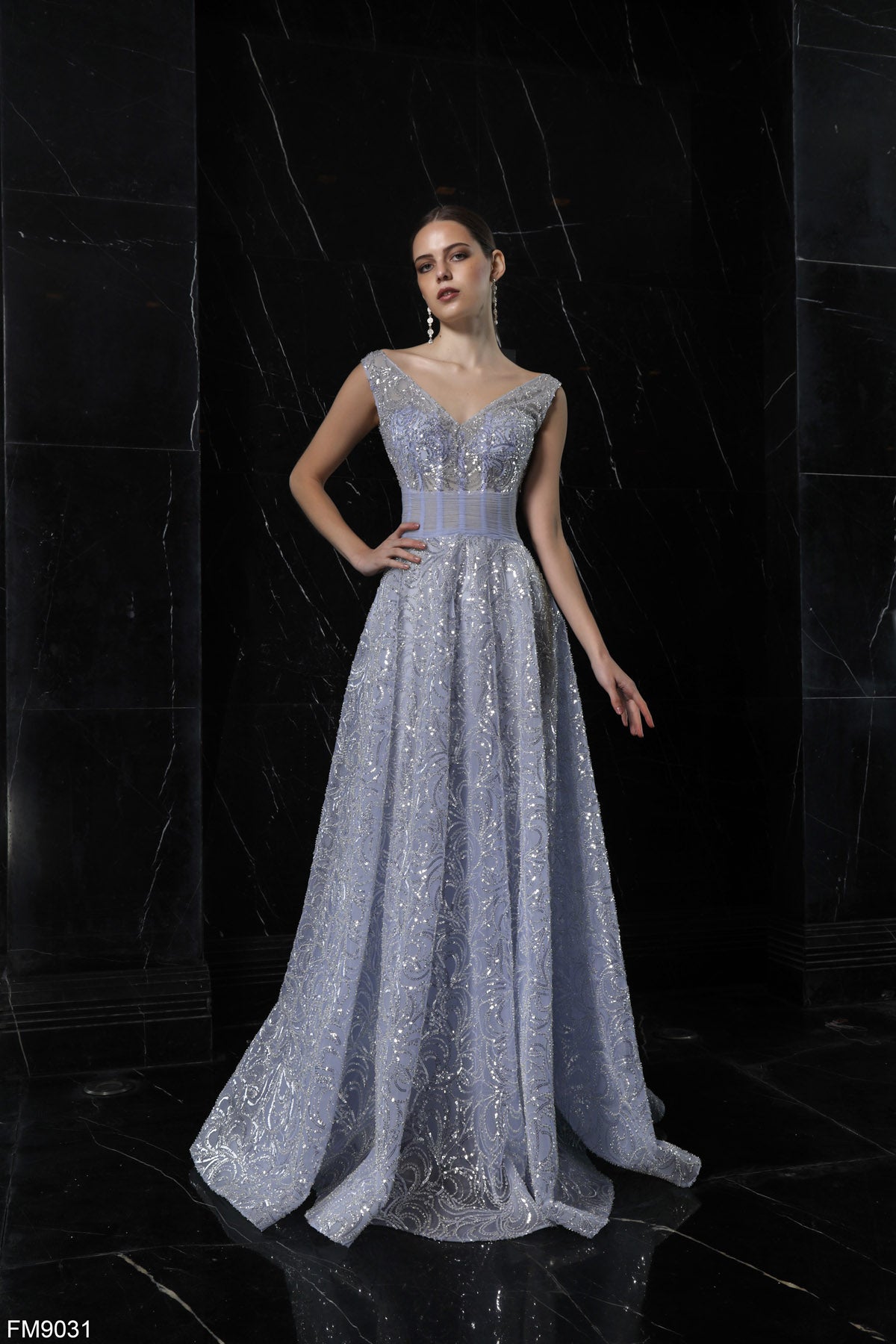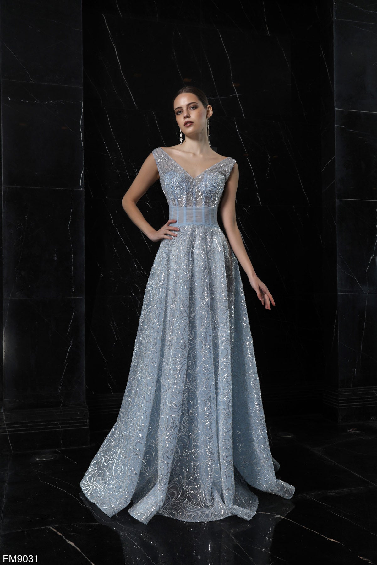 فستان FM9031، من تصميم أزور كوتور، يتميز بفتحة رقبة على شكل حرف V وظهر أنيق، مزين بتطريز رقيق. توفر الأشرطة دعمًا، وتضيف التنورة ذات الثنيات لمسة من الرقي. مثالي لحفلات التخرج أو المناسبات المسائية، هذا الفستان الراقي مصمم ليُبرز أناقتكِ.