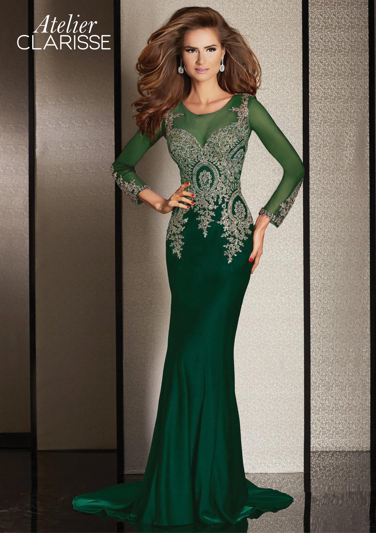 فستان سهرة كلاريس بأكمام طويلة من الدانتيل المعدني M6203