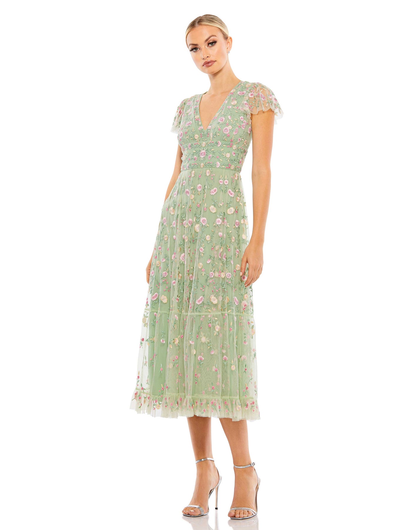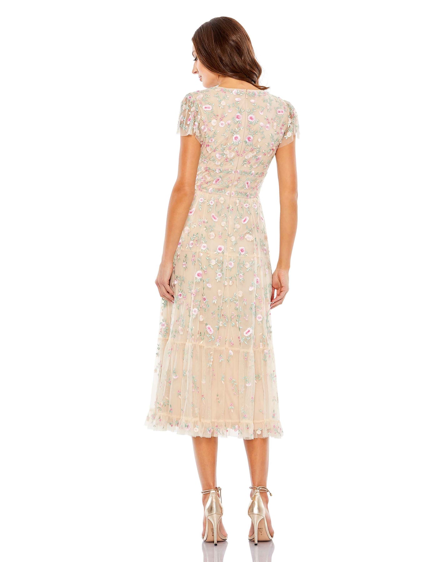 نقدم لكم فستاننا الميدي المطرز بفتحة رقبة على شكل حرف V وأكمام قصيرة - مزيجٌ رائع من الأناقة والرقي. يتميز هذا الفستان المطرز بدقة، فيُضفي لمسةً من الأناقة البسيطة. يُضفي خط الرقبة على شكل حرف V وأكمام القصيرة لمسةً من الأنوثة على قوامكِ.