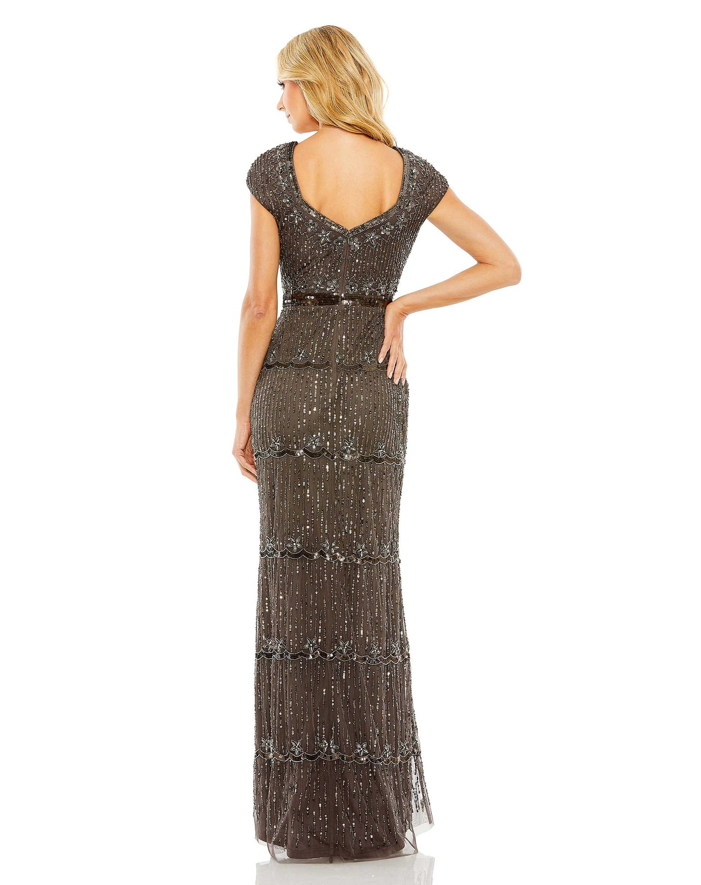 تألقي بأناقة خالدة مع هذا الفستان الرائع بفتحة صدر على شكل قلب. يتميز بتفاصيل دقيقة مزخرفة يدويًا، مما يجعله مثاليًا لأي سهرة مسائية.