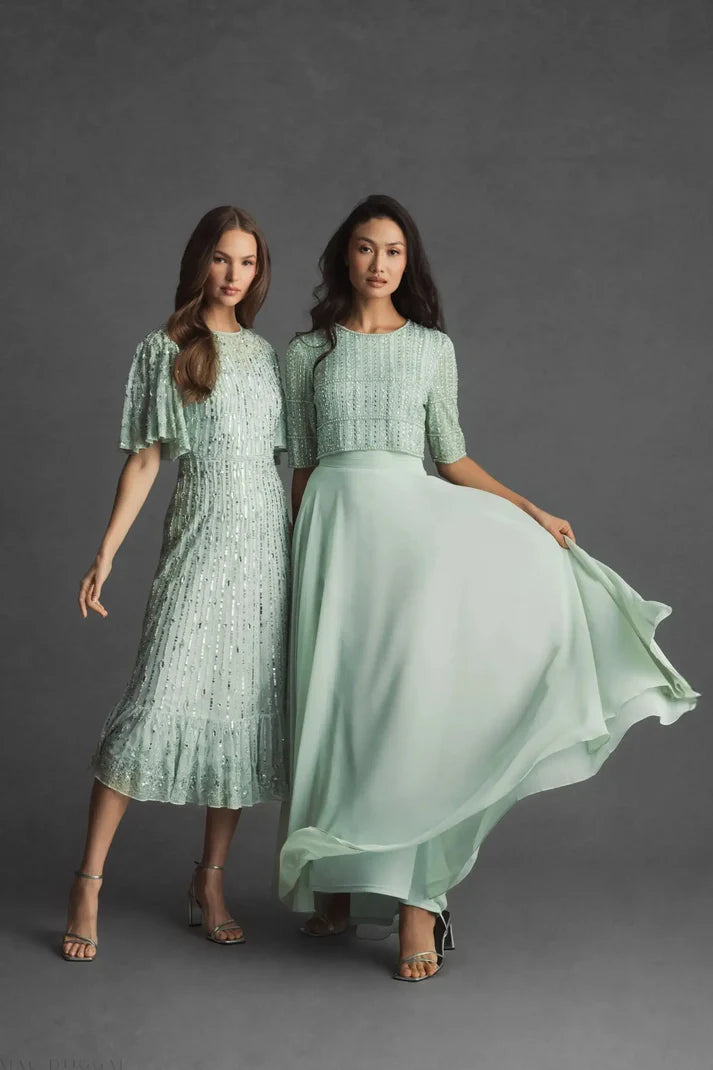 تألقي بالأناقة والرقي مع هذا الفستان الشيفون المزين بالخرز. مصنوع من قماش شيفون انسيابي، يمزج بسلاسة بين الراحة والرقي. مثالي للمناسبات الرسمية والسهرات، هذا الفستان الخالد سيترك انطباعًا لا يُنسى.