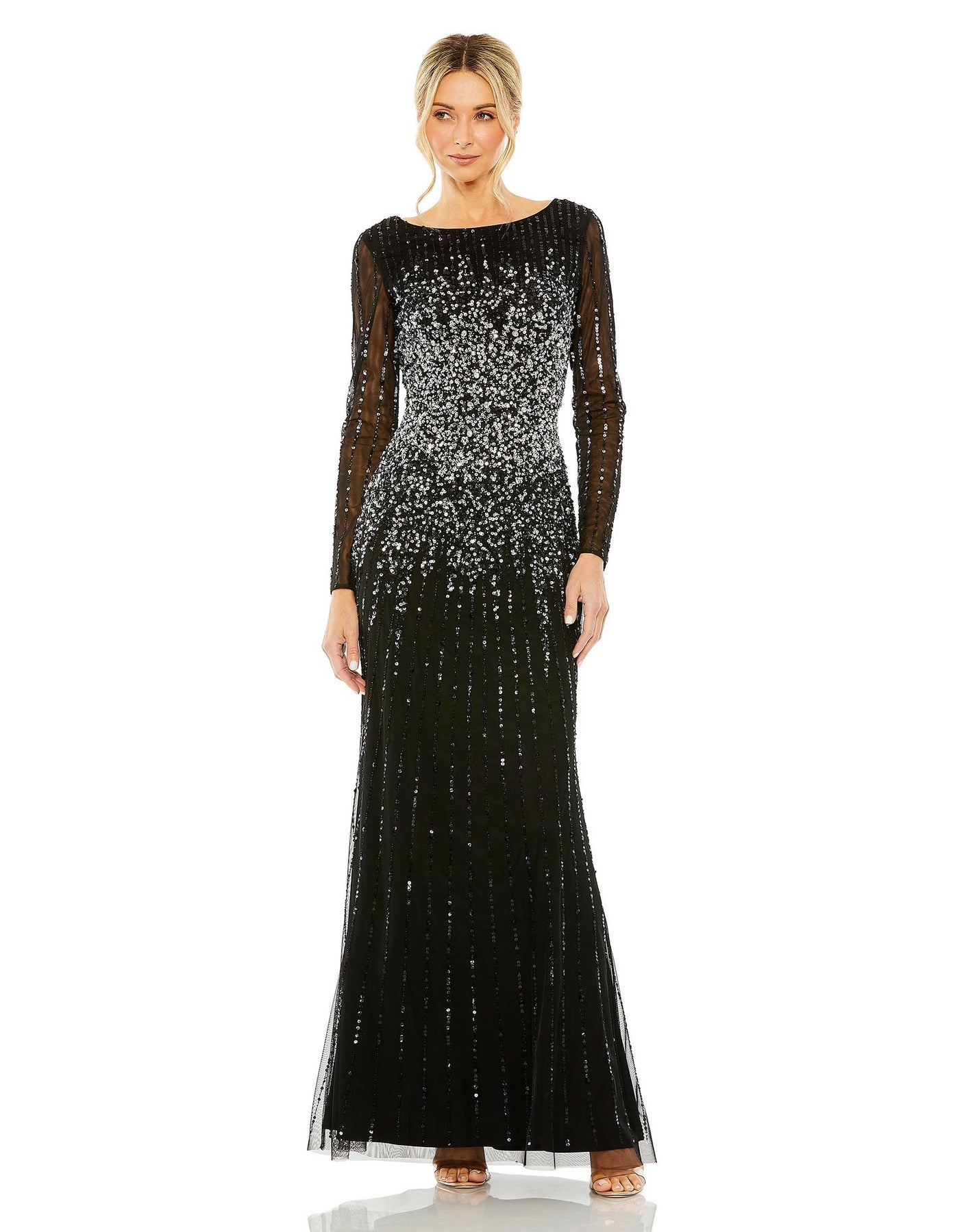 نقدم لكم فستاننا الرائع بياقة عالية وأكمام طويلة وقصة على شكل حرف A، مزين بالترتر البراق. يتميز هذا الفستان الرائع بياقة عالية وأكمام طويلة، وتصميم على شكل حرف A مزين بالترتر البراق. مثالي للمناسبات الرسمية والخاصة، ويضمن إطلالة مبهرة وراقية.