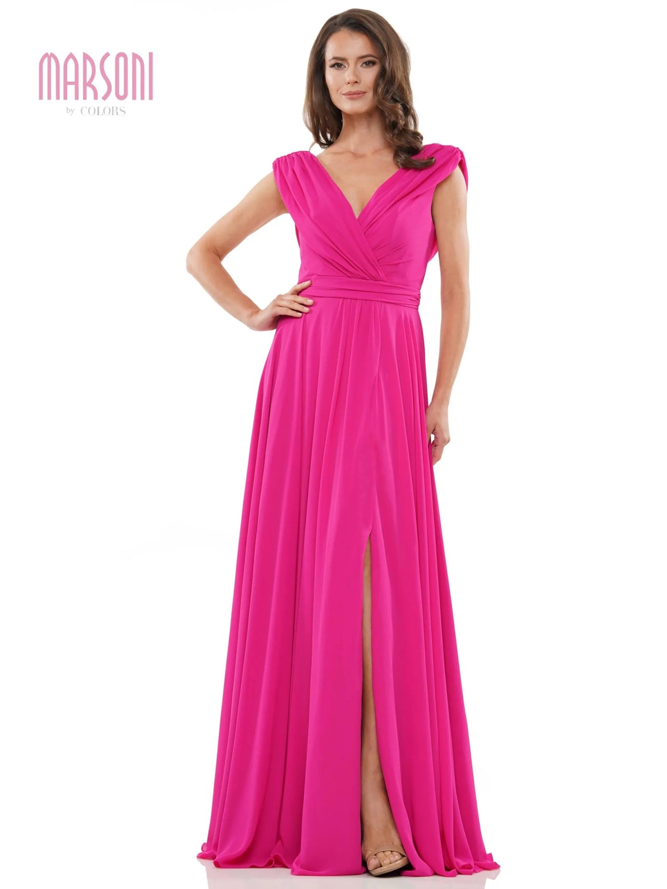 دع أسلوبك يزدهر مع ألوان مارسوني Mفستان رقم ٢٥١. تألقي بهذا الفستان الشيفون بأكمامه الطويلة، ورقبته على شكل حرف V، وخصره المطوي. مع شق أمامي أنيق، ستشعرين بالأناقة والثقة دون عناء. هيا، أطلقي العنان لذوقكِ الأنيق!