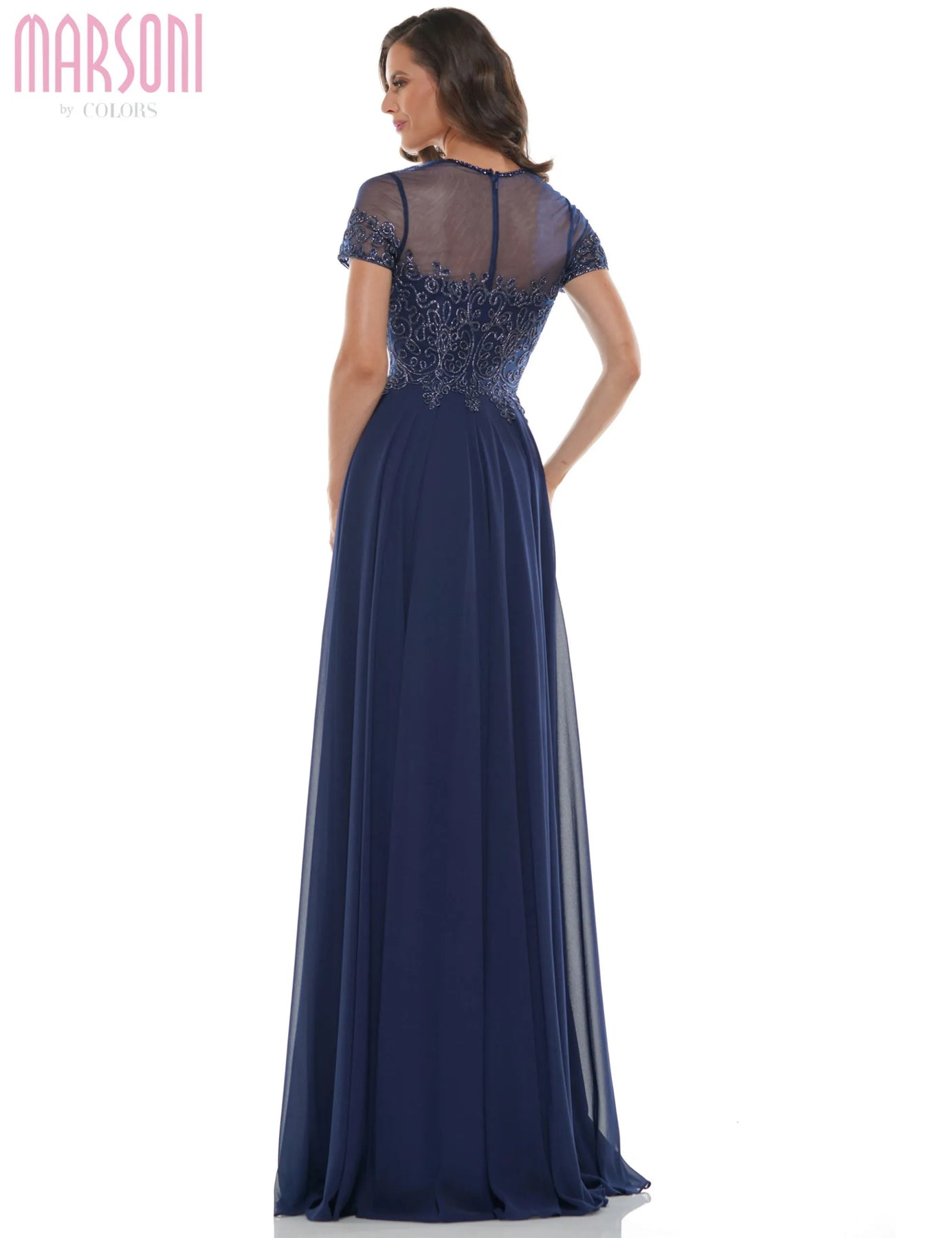 كن ملكة الحفلة مع MARSONI BY COLORS Mفستان ٢٧١. يتميز هذا الفستان الشيفون بفتحة رقبة سوتاش مطرزة بنقشة الملكة آن، بالإضافة إلى أكتاف شفافة وأكمام قصيرة. تألقي بأناقة وعصرية مع هذا الفستان الرائع الذي سيخطف الأنظار.