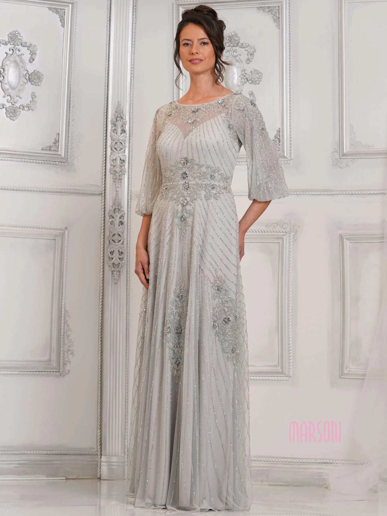 حسّني خزانة ملابسكِ مع فستان مارسوني باي كولورز MV1323. هذا الفستان المرصّع بالخرز لا يضفي لمسةً من التألق على إطلالتكِ فحسب، بل توفر الأكمام المرفقة راحةً وتغطيةً مثالية. تألقي بأسلوبكِ الفريد مع هذا الفستان الفريد.
