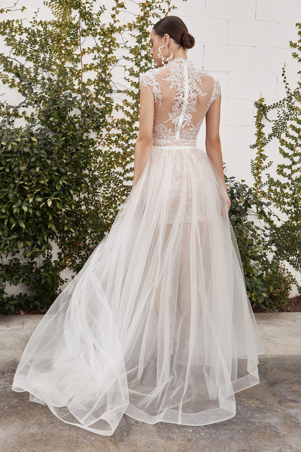 يقدم فستان أندريا وليو A1066 إطلالة عروس عصرية ومتعددة الاستخدامات مع فستان زفاف إيفانجلين. يمكن تحويل هذا الفستان ذو التصميم A إلى فستان قصير أنيق لحفلة ما بعد الزفاف. يُضفي الدانتيل المزين بالخرز والزخارف الزهرية، إلى جانب تنورة التول المنفصلة والبطانة المطاطية بلون البشرة، لمسة راقية من الأناقة على العروس العصرية.