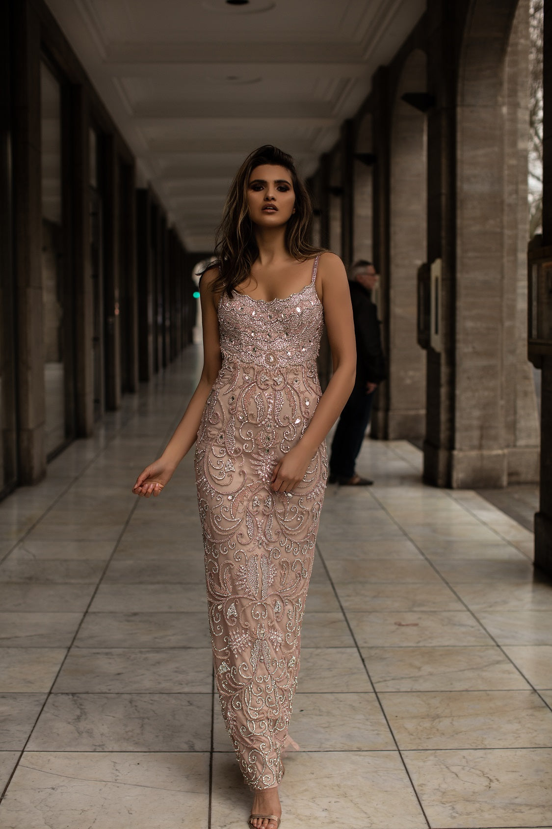 استعدي لخطف الأنظار بفستان HF1510 الفاخر من شيك آند هولاند! يتميز هذا الفستان الطويل بتصميم غمد، مزين بالترتر المتقن والخرز الزجاجي وأحجار الراين، ليضفي لمسةً مثاليةً من التألق والجاذبية على أي مناسبة. سيمنحكِ الجزء العلوي بدون أكمام والظهر المفتوح على شكل حرف V مع سحاب في المنتصف شعورًا بالثقة والجاذبية، بينما يضيف الشق العالي لمسةً من الإثارة. استعدي لإطلالةٍ ساحرة بهذا الفستان الرائع من شيك آند هولاند!