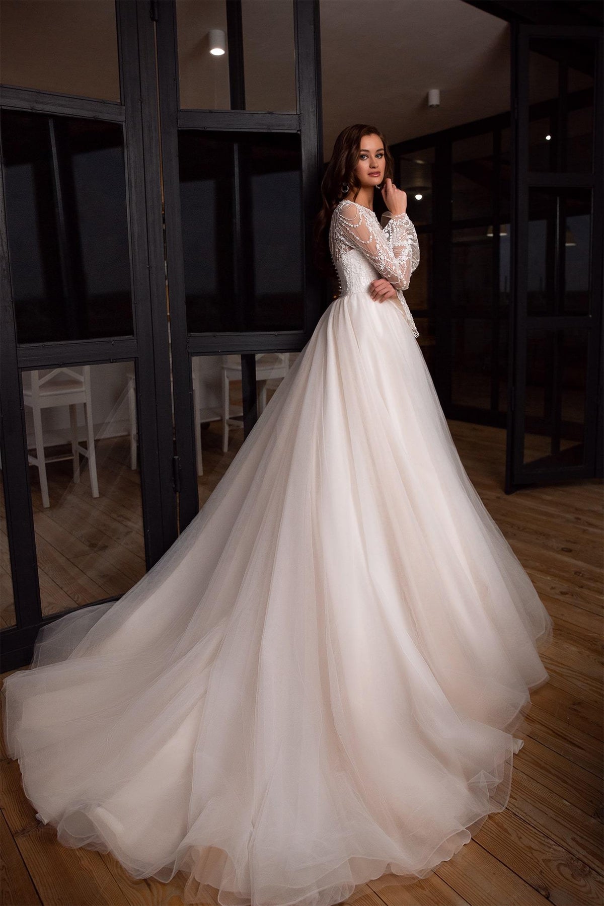 Turn heads in the Maria Anette 5107 Dress, a daring ballgown that blends romance with bold details. Its sweetheart neckline is enhanced by a sheer illusion overlay, while long sheer sleeves are adorned with sparkling beading for a captivating finish. This long-length dress combines classic elegance with fearless glamour, perfect for the bride ready to make a statement.