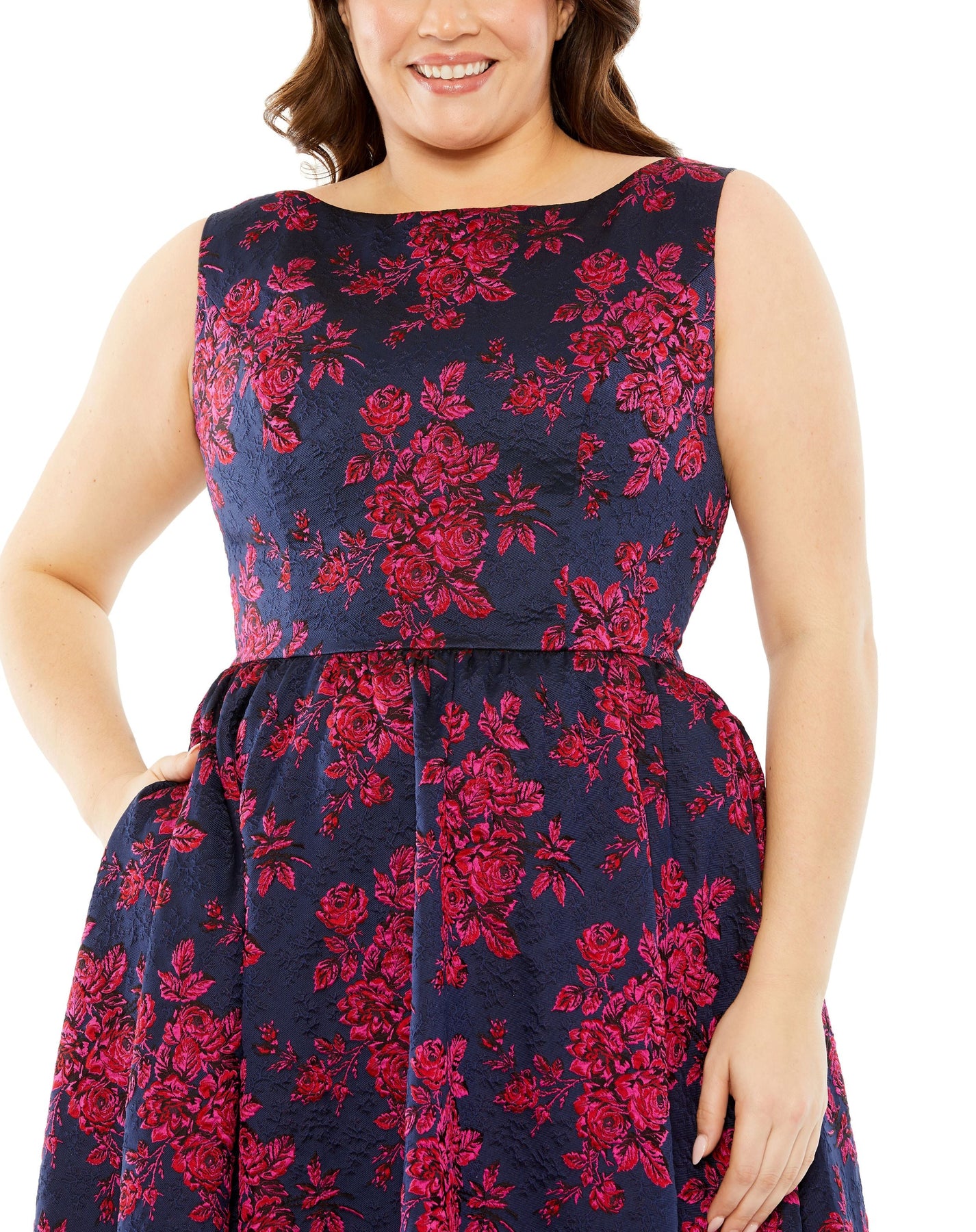 فستان مطرز بالزهور بدون أكمام