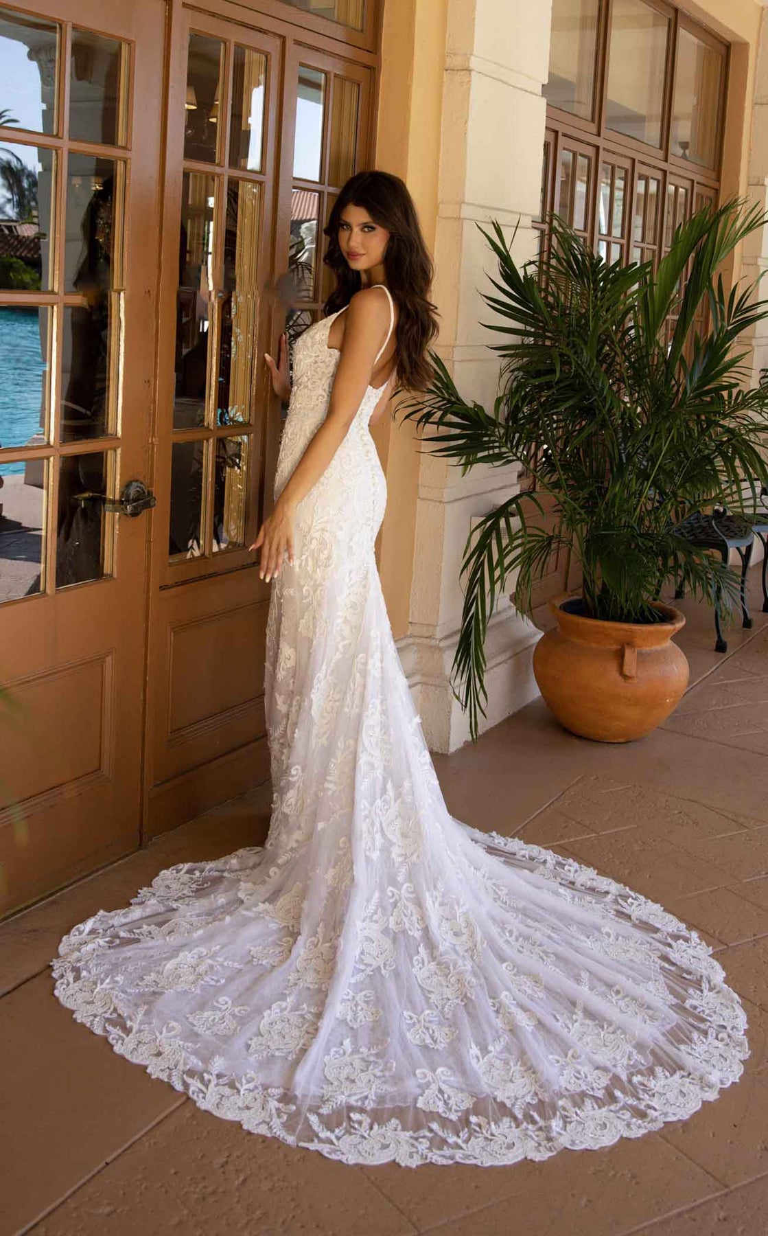 Enhance your bridal look with the Primavera Couture 11112 dress. This breathtaking dress boasts an embroidered paisley design, a plunging V-neckline, and a floor-length A-line skirt with a charming court train. The sleeveless and natural waistline design offers a flattering and elegant silhouette. Make your royal entrance with this ethereal and graceful dress.