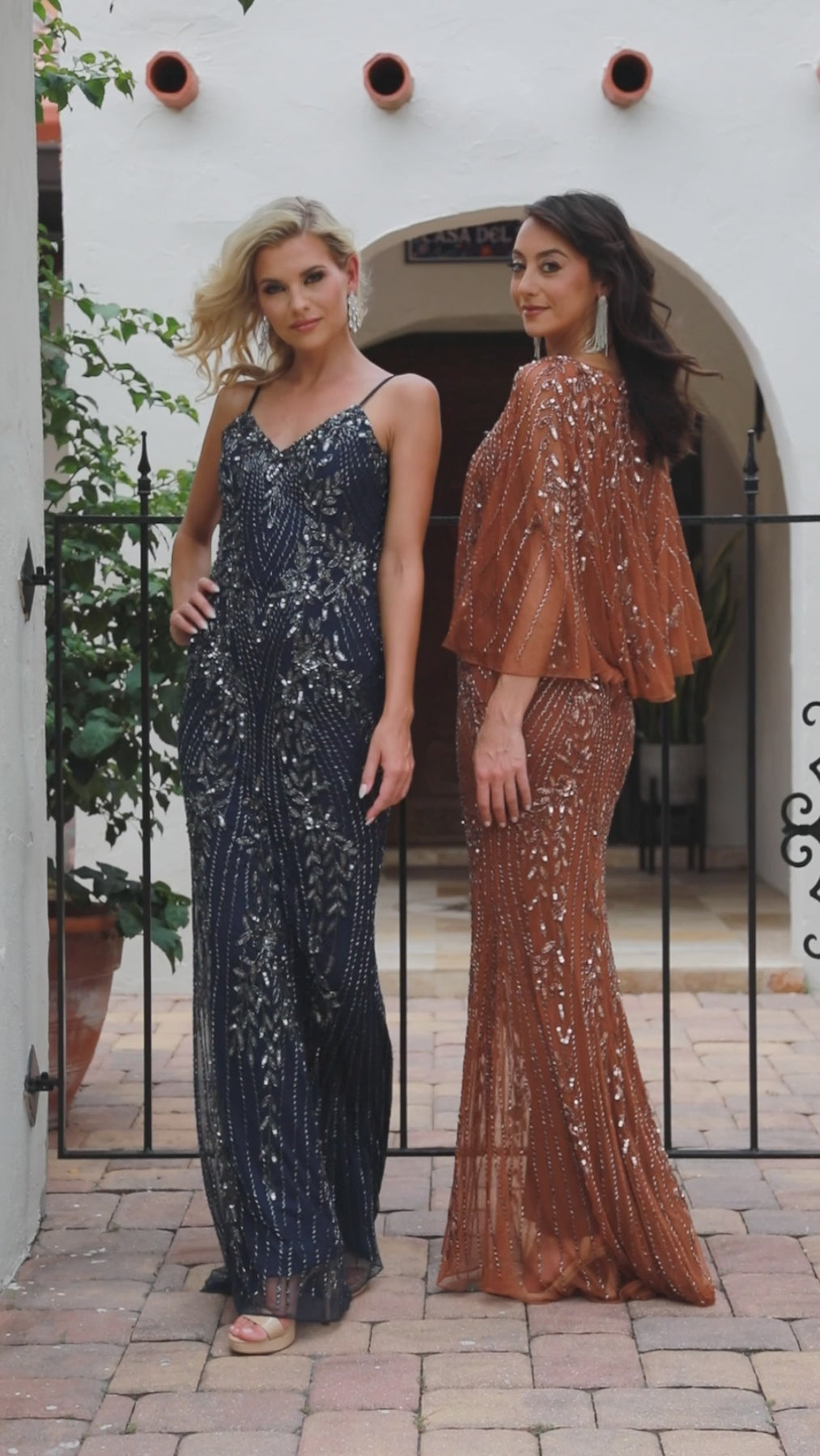 دللي نفسكِ بأناقة فاخرة مع فستان بريمافيرا 13152. يتميز هذا الفستان الرائع بقصّة طويلة مزينة بالخرز تُبرز منحنيات جسمكِ، بينما يُضفي خط العنق الأنيق على شكل حرف V لمسةً من الرقي. تصميمه بدون أكمام مع تفاصيل عباءة يُضفي لمسةً من الجاذبية والثقة، مثالي للمناسبات الرسمية المسائية.