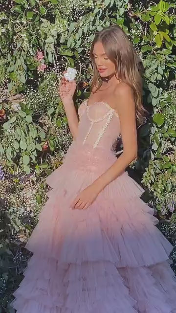 إذا كنتِ تبحثين عن قطعةٍ مذهلةٍ تُضفي لمسةً مميزةً على متجركِ، فإن فستان الأميرة سيُضفي لمسةً من الروعة على واجهة عرضكِ. يتميز فستان الأميرة بصدرية كورسيه مطوية جميلة مع تفاصيل زهور صغيرة ورباط خلفي قابل للتعديل لسهولة التركيب. تنورة الكشكشة خفيفة وأنيقة بلا شك. فستان A1017 بلونه الوردي الفاتح، الرومانسي والجميل، خيارٌ رائعٌ لحفلات الخطوبة أو حفلات التخرج. إنه حقًا كل ما تحلمين به، وسيخطف أنفاسكِ.